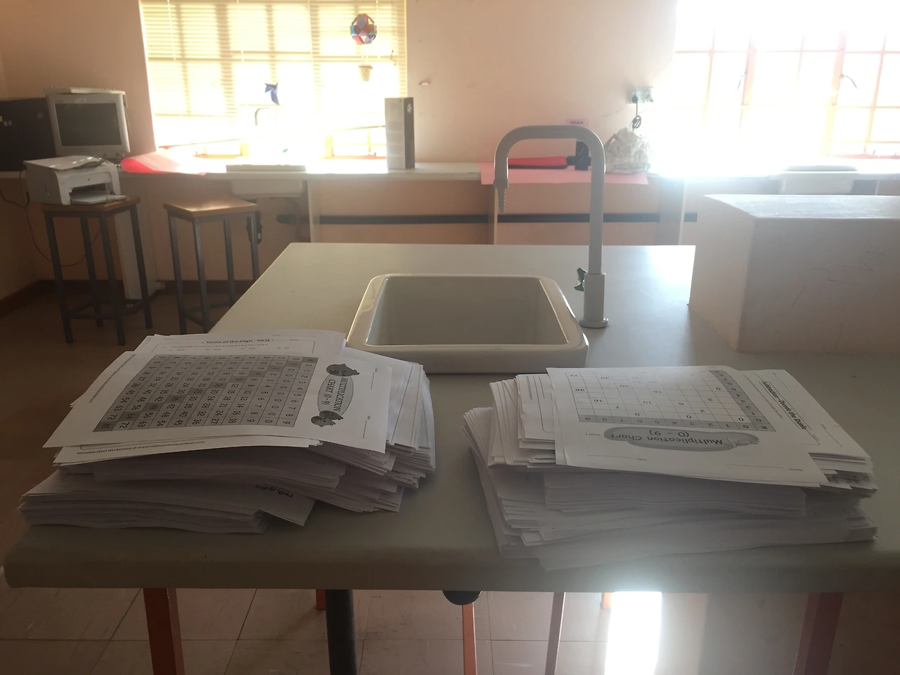 보츠와나는 예산 문제로 학생들에게 교과서를 한 권씩 배부하지 못하기 때문에 학생들은 학교에서 교과서를 빌려 쓰고 매 수업의 절반을 교과서 필사에 할애했다. 나는 교과서를 베끼는데 시간을 낭비할 수 없어 교과서를 직접 편집해서 매시간 수업 자료를 배부했다. 이것은 내가 컴퓨터를 활용할 수 있고 시간이 여유로워서 가능한 것이지, 현지 교사들에게 실제적인 본보기가 되지는 못할 것이었다. 나는 자료 준비를 위해 매일 한 시간 이상을 복사기 앞에서 보냈는데 위치가 교장실 입구라 오가는 모든 사람들이 내 수학 자료를 한 번씩 훑어봤으나 질문을 하는 사람은 없었고, 두 세장마다 용지가 걸리는 탓에 나는 복사하면서 날마다 인내심의 한계에 부딪쳤었다. 내가 떠난 후, 학생들의 머릿속에 나라는 존재 말고 구구단만 제대로 남아도 나는 만족할 것 같다. 학생들이 연산에 손가락 사용하는 횟수가 부디 빨리 줄어들면 좋겠다.