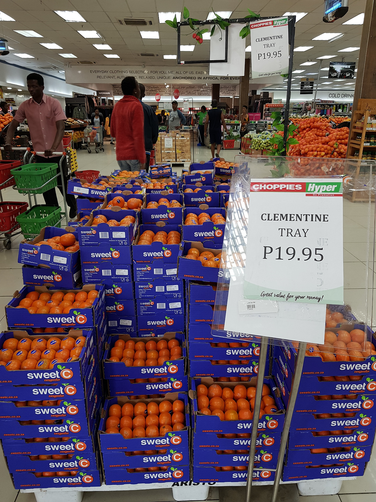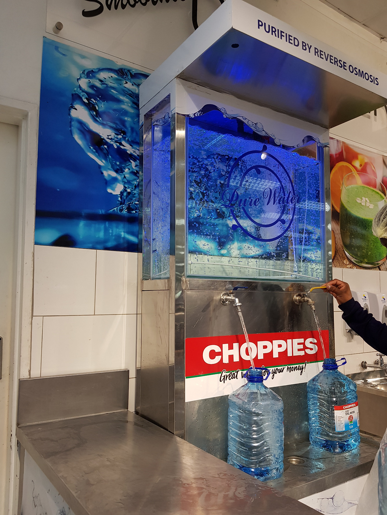 보츠와나에서 가장 흔히 볼 수 있는 마트는 SPAR(스파)와 CHOPPIES(초피스)였다. 스파는 네덜란드의 다국적 기업으로 남아프리카에 널리 분포하고, 초피스는 옆 나라 잠비아와 짐바브웨에도 진출한 보츠와나 기업으로 상대적으로 가격이 저렴하고 상품의 질과 분위기도 더 로컬 느낌이었다. 대부분의 프랜차이즈들은 인구가 밀집한 지역에 일반 매장보다 훨씬 큰 규모의 매장을 운영하고 이를 이름으로 구분하는데, 시골인 우리 동네에 SPAR와 CHOPPIES SUPERSTORE가 있다면 수도엔 SUPERSPAR와 CHOPPIES HYPER가 있었고 둘의 수준은 과연 매장 크기나 물건의 수준은 확연히 달랐다. 국내 기업으로 PAYLESS(페이리스)와 Sefalana(세팔라나)도 있는데, 전자는 오래된 쇼핑몰인 Main Mall과 BBS mall에서만 봤고 후자는 우리 동네에도 있었다.