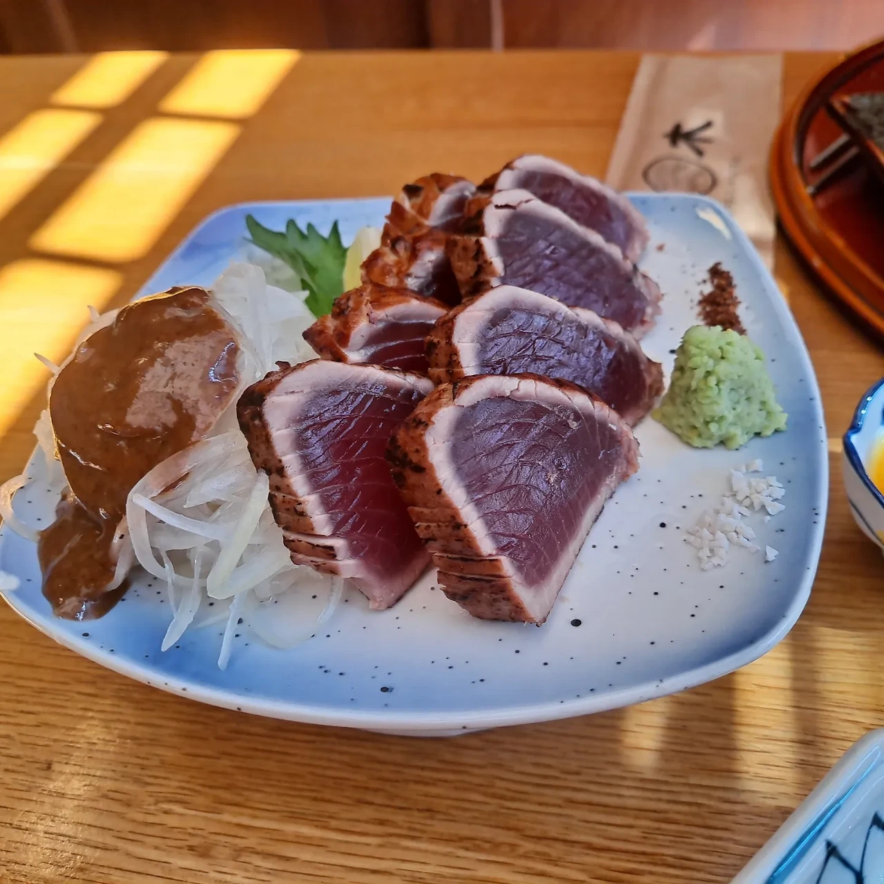 타다끼는 다르다. 날 생선의 은은한 감칠맛과 구운 생선의 고소함이 한 번에 느껴진다. 그것도 비릿함 하나 없이. 보통의 식당에서는 토치나 프라이팬으로 겉면을 그을리지만, 볏짚을 태워 겉을 구워내는 가게들도 요즘 들어 많이 생겨나고 있다. 그도 그럴 게 이걸 먹으면 다른 타다끼는 성에 안 차겠다는 생각이 절로 든다.