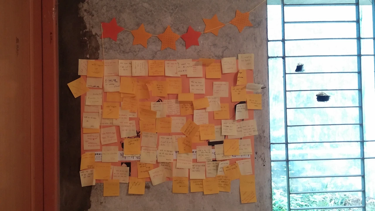 행복 찾기 프로젝트는 갤러리에 찾아온 모든 아이와 가족들에게 "행복하세요?" 묻고, 행복하다고 말하면 하트 스티커를 주고 방글라데시 지도에 붙이게 했다. 행복이 가득한 방글라데시의 모습을 함께 만들고 선물해주고 싶었다. 한때 가장 행복한 나라였던 방글라데시의 사람들은 더 이상 행복하다고 말하지 않는다. 4년 전, 처음 방글라데시에 도착하고 이 나라가 왜 가장 행복한 나라인지 궁금했다. '(나라가 이런데) 당신들은 왜 행복하다 말하죠?' 기회가 되면 많은 사람에게 질문을 했었다. 내가 만났던 사람 중에는 행복지수가 높았다는 것을 부끄러워하는 사람도 있었다. 그는 '행복지수가 아니라 체념 지수'이거나 교육받지 못해 삶에 대한 기대치가 낮아 그런 것이라고 말했다.