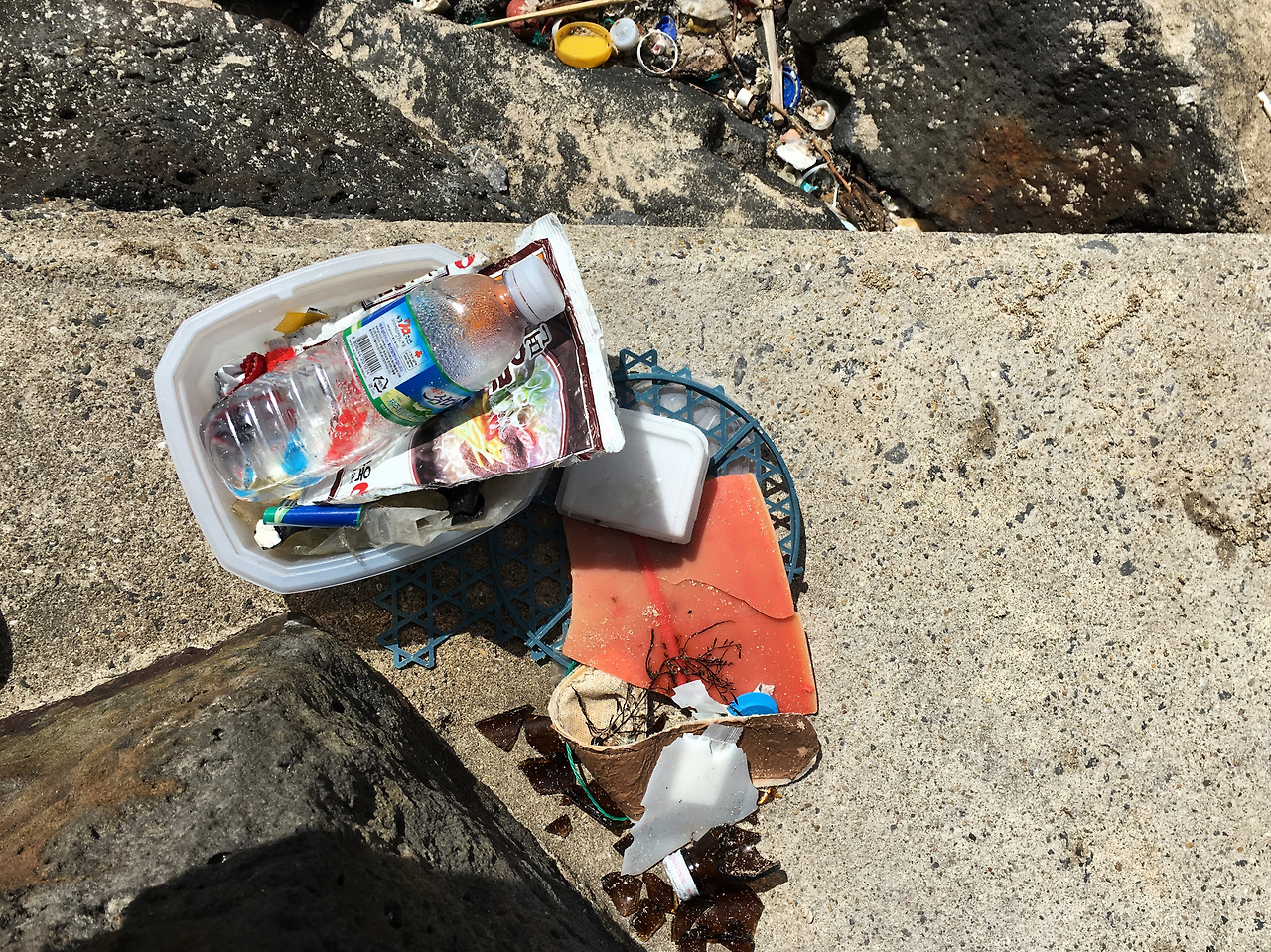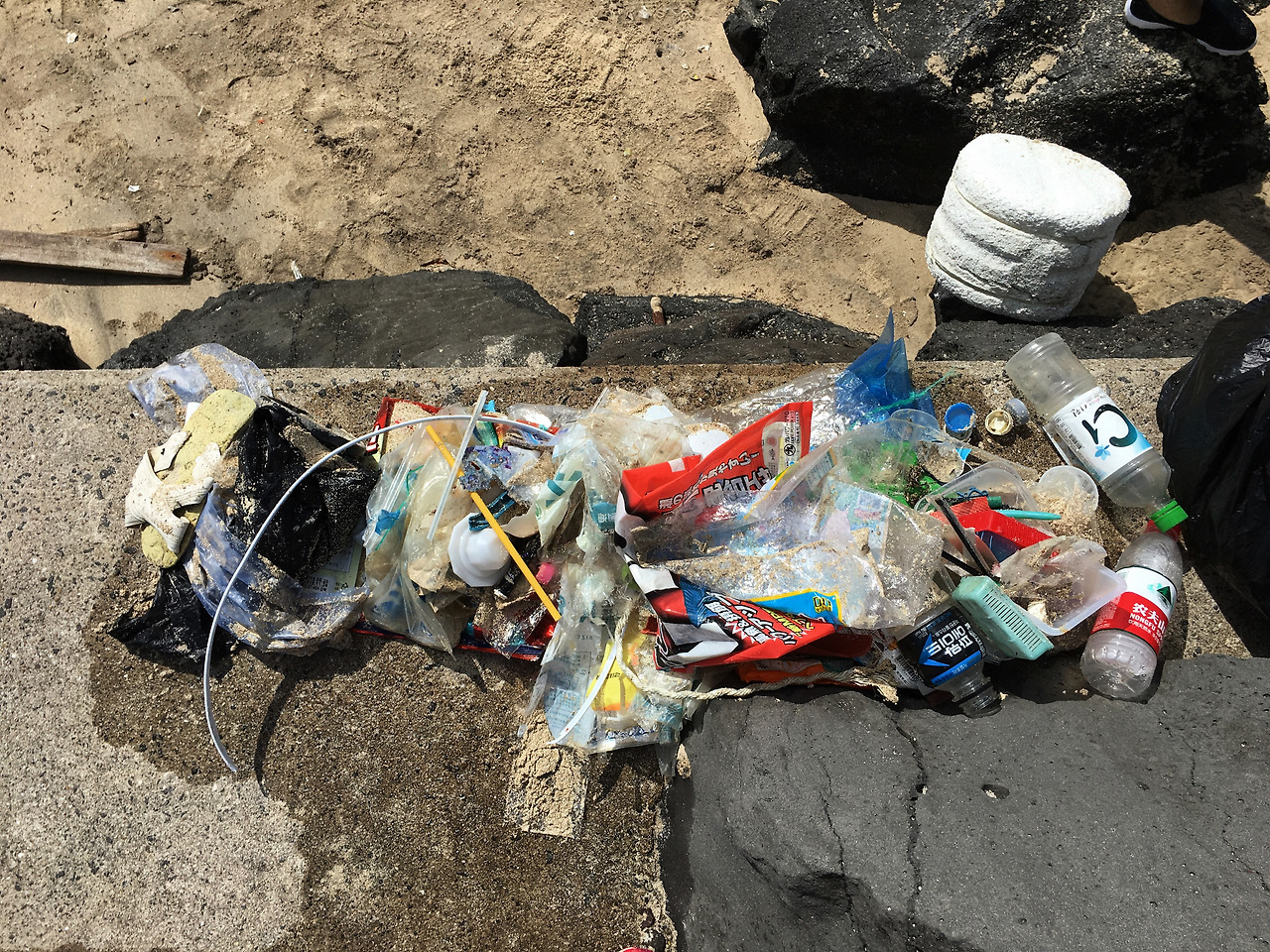 하지만 그렇게 찾은 바다에 해류에 떠밀려온 외쿡산 쓰레기와 놀다가 깜빡하고 안 챙겨가신 몇몇 분의 쓰레기가 해변 가득!!!!!!