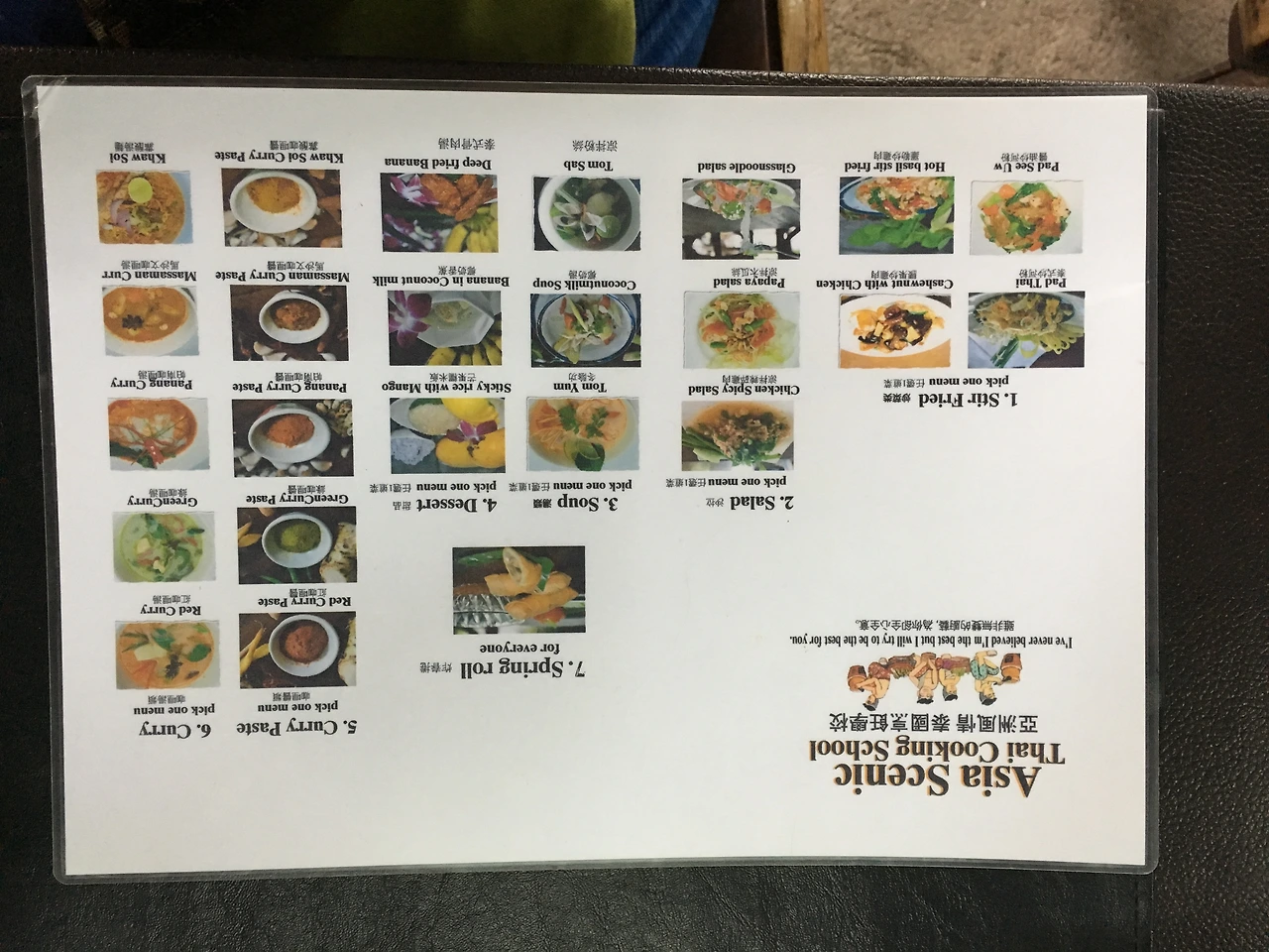 클룩의 플랫폼을 통해 예약된 곳은 아시아 시닉 타이 쿠킹스쿨(Asia Scenic Thai Cooking School)로 가정에서도 쉽게 따라할 수 있는 요리를 배울 수 있다는 것이 특징이다. 치앙마이 올드시티 내에서 진행되는 5가지 메뉴(볶음요리, 국물요리, 스프링롤, 커리페이스트와 커리)를 배우는 반나절 코스와 7가지 메뉴(샐러드와 디저트가 추가)를 배우는 전일 코스 그리고 치앙마이 근교 농장에서 진행되는 유기농 농장 코스 중 선택할 수 있다. 10인 내외의 소그룹 형태로 진행되고, 식재료 시장 방문과 스튜디오 쿠킹 클래스에 숙소 왕복 차량 서비스와 레시피 북까지 포함되어 있다.