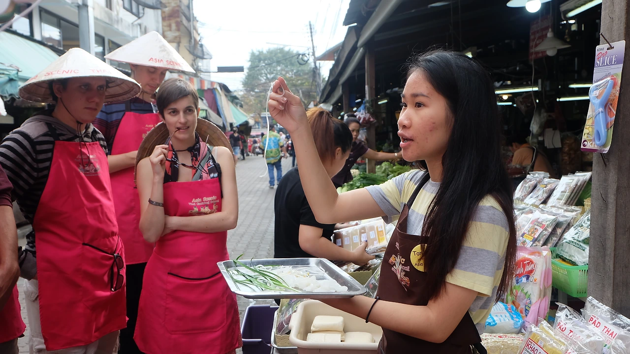 수업은 주방이 아닌 시장에서 시작된다. 엉 선생님을 따라 약 5분 정도 떨어진 시장을 향해 이동한다. 요리에 사용될 주요 식재료와 소스에 대한 설명과 함께 좋은 재료를 골라내는 안목을 키우는 연습부터 하게 된다.
