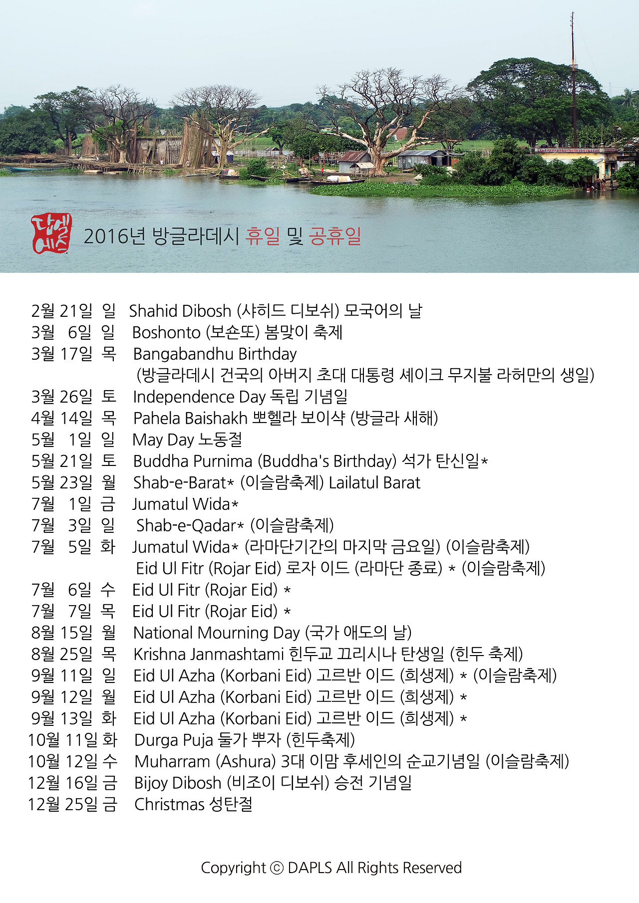 방글라데시 2016년 휴일 및 축제