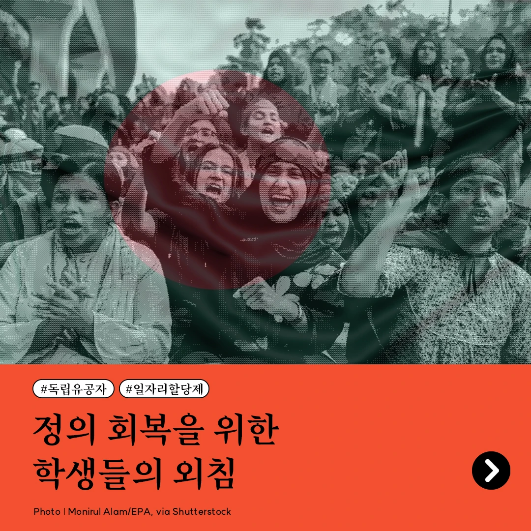 이번 시위를 촉발한 ‘공무원 할당제’는 1971년 독립전쟁 유공자 자녀들에게 공직의 30%를 할당하는 정책이다. 2018년 대규모 반대 시위로 폐지되었던 이 정책에 대해 지난달 다카 고등법원이 정책 폐지 결정을 무효화하면서 다시 갈등이 불거졌다.