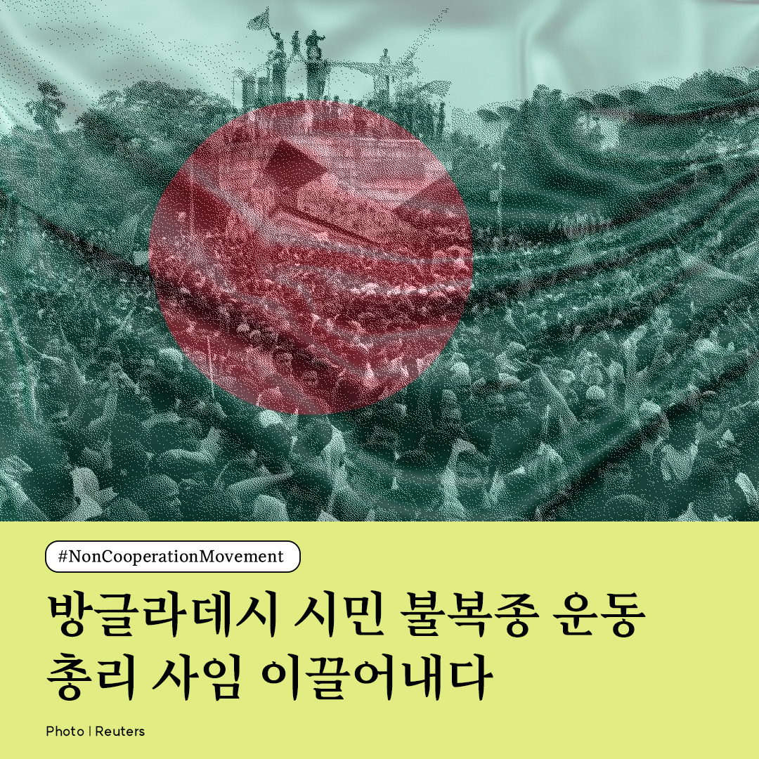 방글라데시 총리가 오늘 사임했다. 2013 샤허박 시위, 2018년 학생 시위에 이어 정의 회복을 외치던 시민들의 목소리가 결국 총리를 사임시키는 데 성공한 것이다. 이번 시위의 시작은 공무원 할당제에 반발하여 일어난 학생 시위였다. 지난달 16일 공무원 할당제에 반발하여 시작된 학생 시위를 정부가 강경진압하면서 수많은 사람이 목숨을 잃었다. 공무원 할당제의 핵심은 바로 정치인들의 부정부패 문제인데, 시위 기간 중에도 총리 측근의 비리 이슈가 다시금 터지면서 시위는 반정부 시위로 번지게 되었다. 정부는 인터넷과 전화를 비롯한 모든 통신 서비스 차단과 통행 금지령을 발표하고 시위 진압을 위해 장갑차를 비롯한 군 투입, 발포 명령 등 극단의 조치로 시위대를 저지하려 했지만, 수많은 사상자를 발생시키며 상황을 악화시켰다.