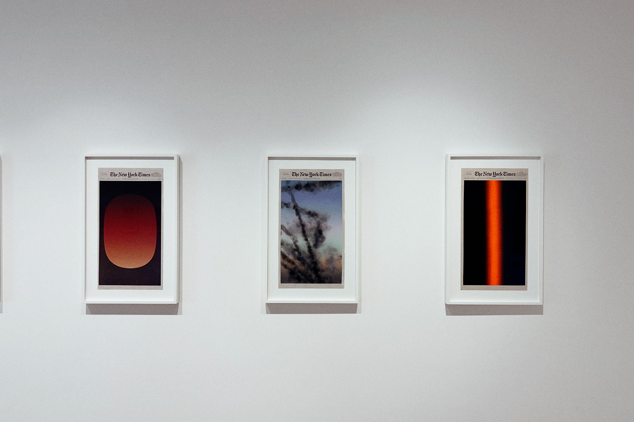 제4전시실에서는 시부야 쇼의 연작이 가장 흥미로웠다. 코로나 팬데믹 초기부터 매일 옥상에서 명상 후 그날의 신문 위에 채색한 36점의 작품은 세계 곳곳의 비극을 색과 형상으로 기록한다. 미국 내 총기 사건부터 한국의 12·3 비상계엄 사태, 12·29 제주항공 여객기 참사까지, 세계 곳곳의 비극과 충격적인 사건들이 신문 지면 위에 색과 형상으로 새겨진다. 이는 단순한 뉴스의 소비가 아닌, 개인적 성찰과 사회적 기억이 만나는 지점에서의 예술적 응답이다. (오디오 가이드에서 액자를 넘기면 원본 신문을 볼 수 있다고 안내했지만, 36개의 액자가 모두 벽에 단단히 고정되어 있는 것처럼 보였다. 소심한 성격의 나는 결국 액자를 넘겨보지 못했다.)