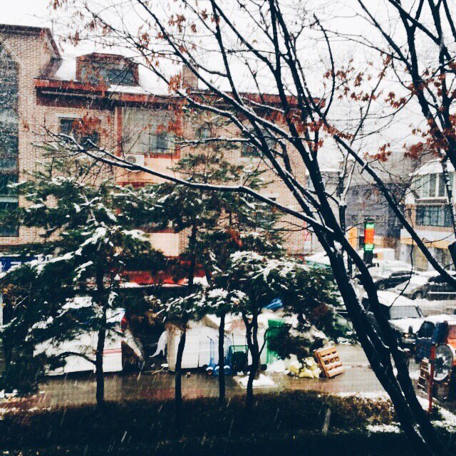 그리고 다음날(그러니까 오늘), 아침에 눈을 떠보니 하늘에서 펑펑 함박눈이 쏟아지고 있었다. 창밖에는 벌써 눈이 쌓인 곳도 있었다. 아직도 하얀 눈이 내리면 설레는 나에게는 선물 같은 날이었다. 창밖에 내리는 눈을 보며 아침을 먹으면서, 오늘은 창가에 앉아 실컷 눈 구경이나 해야겠다는 생각을 했다.