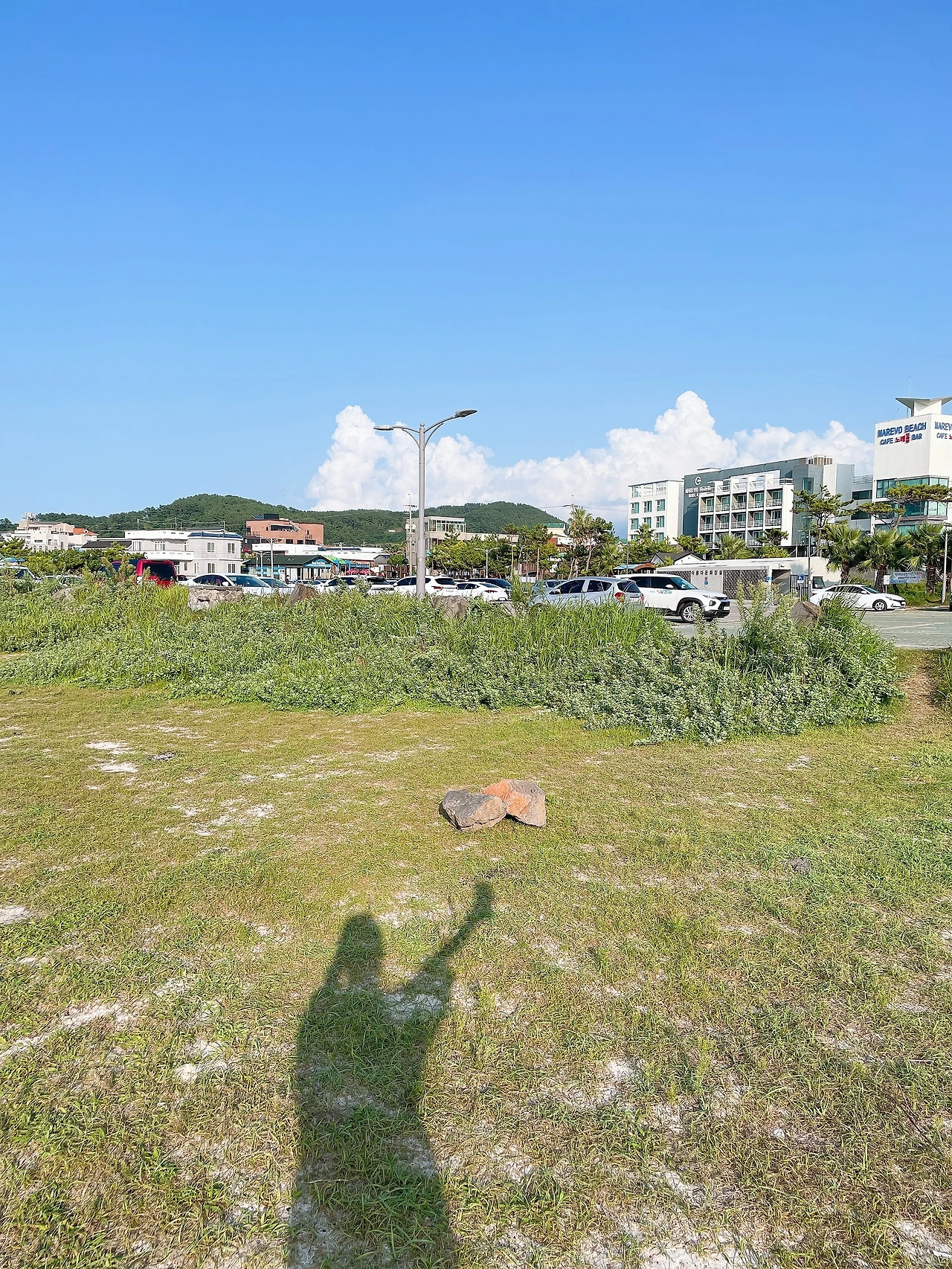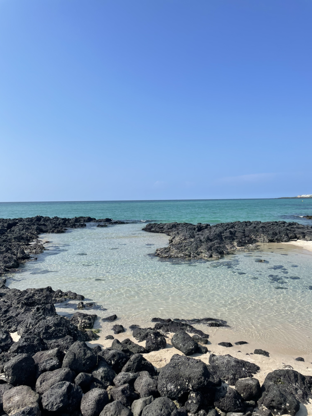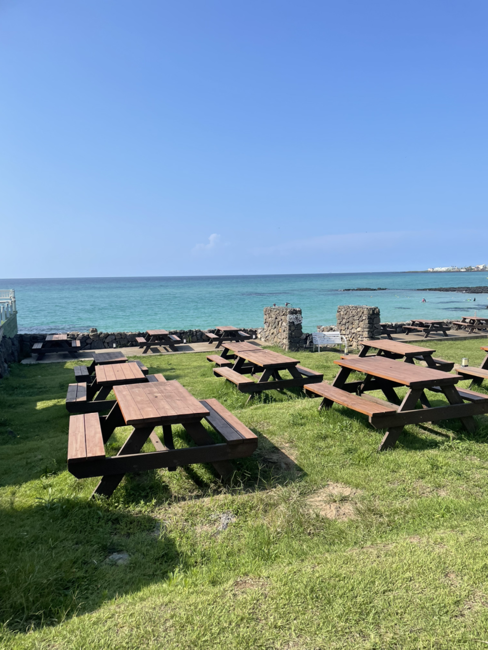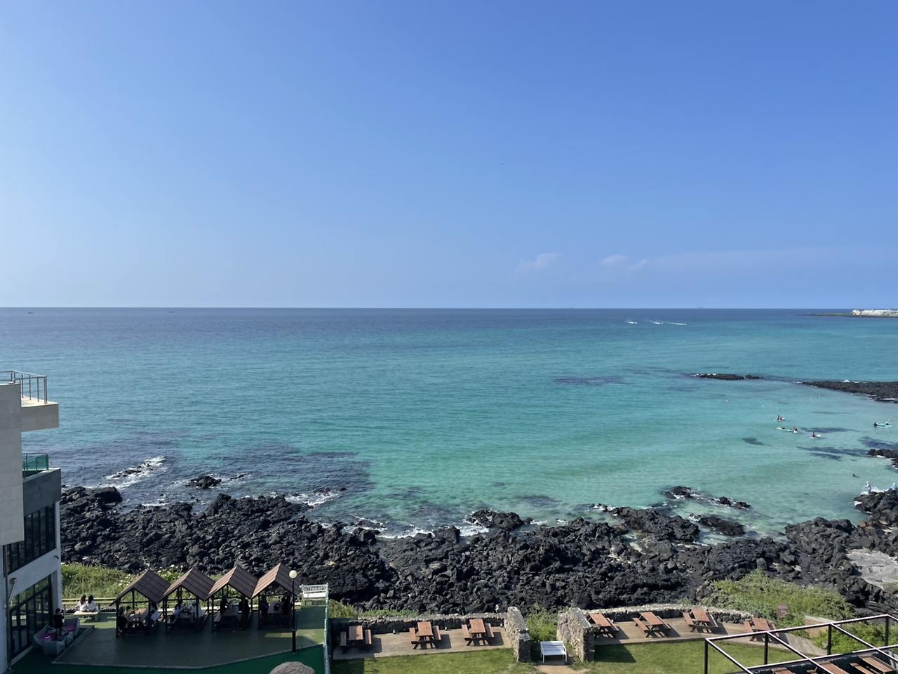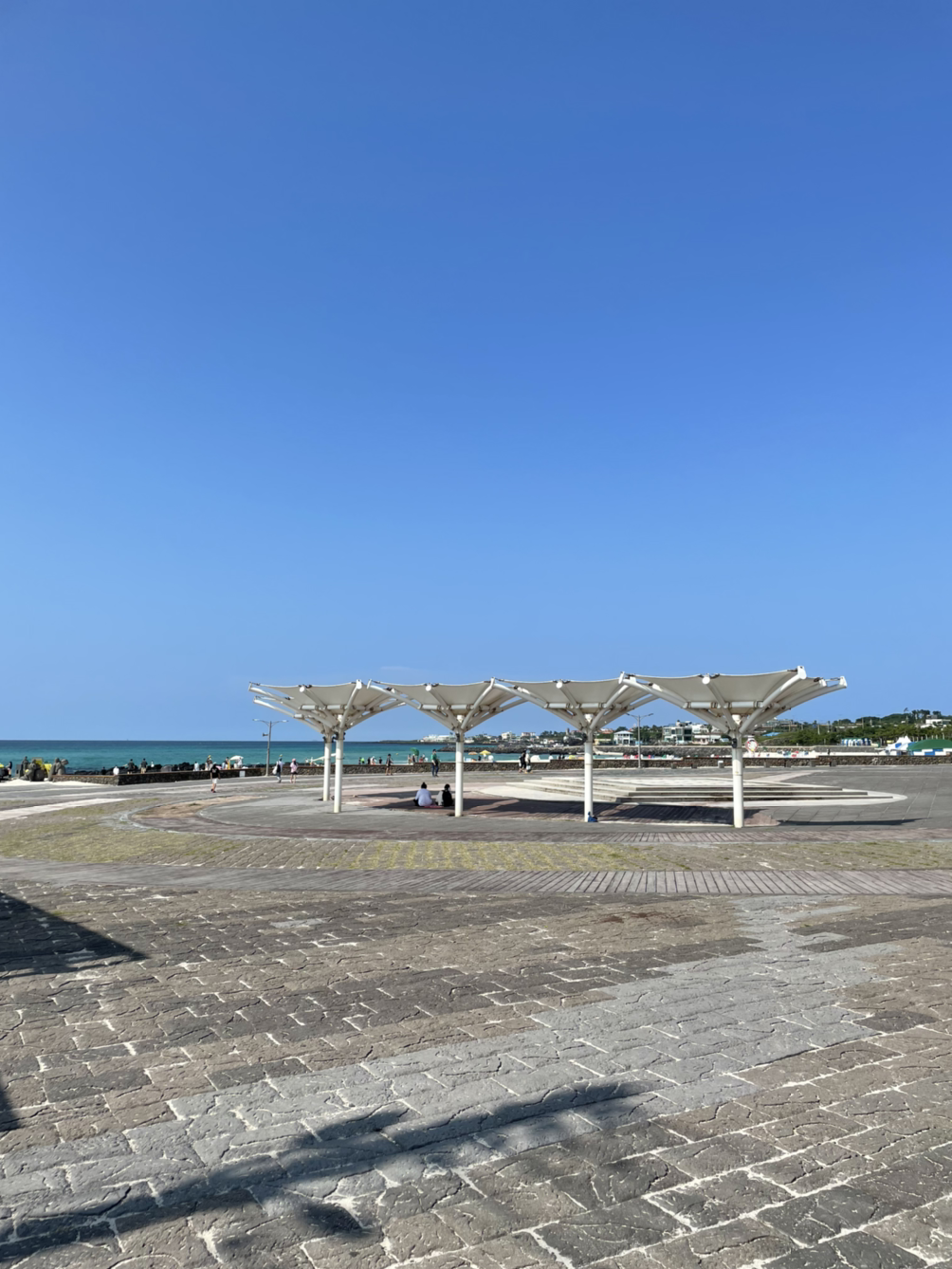 늦여름이었지만 아직 해변을 즐기는 사람이 있었다. 여유롭고 평화로워 보이는 풍경이다. 햇빛이 쨍쨍이라 덥고 뜨겁긴 했지만 바다에 왔으니까! 사진도 마음껏 찍고, 잠깐 앉아 에메랄드빛 제주 바다도 넋 놓고 바라보았다.