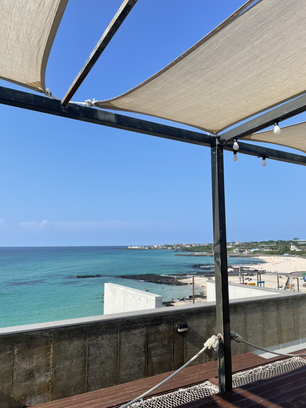 지인이 알려준 맛집에서 든든하게 배를 채우고, 또 다른 지인이 알려준 카페에 가서 정말 맛있는 커피를 마시며 잠시 숨을 고르는 시간을 가졌다. 또 제주에 온다면 꼭 먹어볼 거라고 생각했던 게 이렇게 빨리 이루어질 줄이야. 제주 도착하고 보니 파랗고 맑은 하늘이 여행을 즐기기 더할나위 없이 좋은 날씨였다.