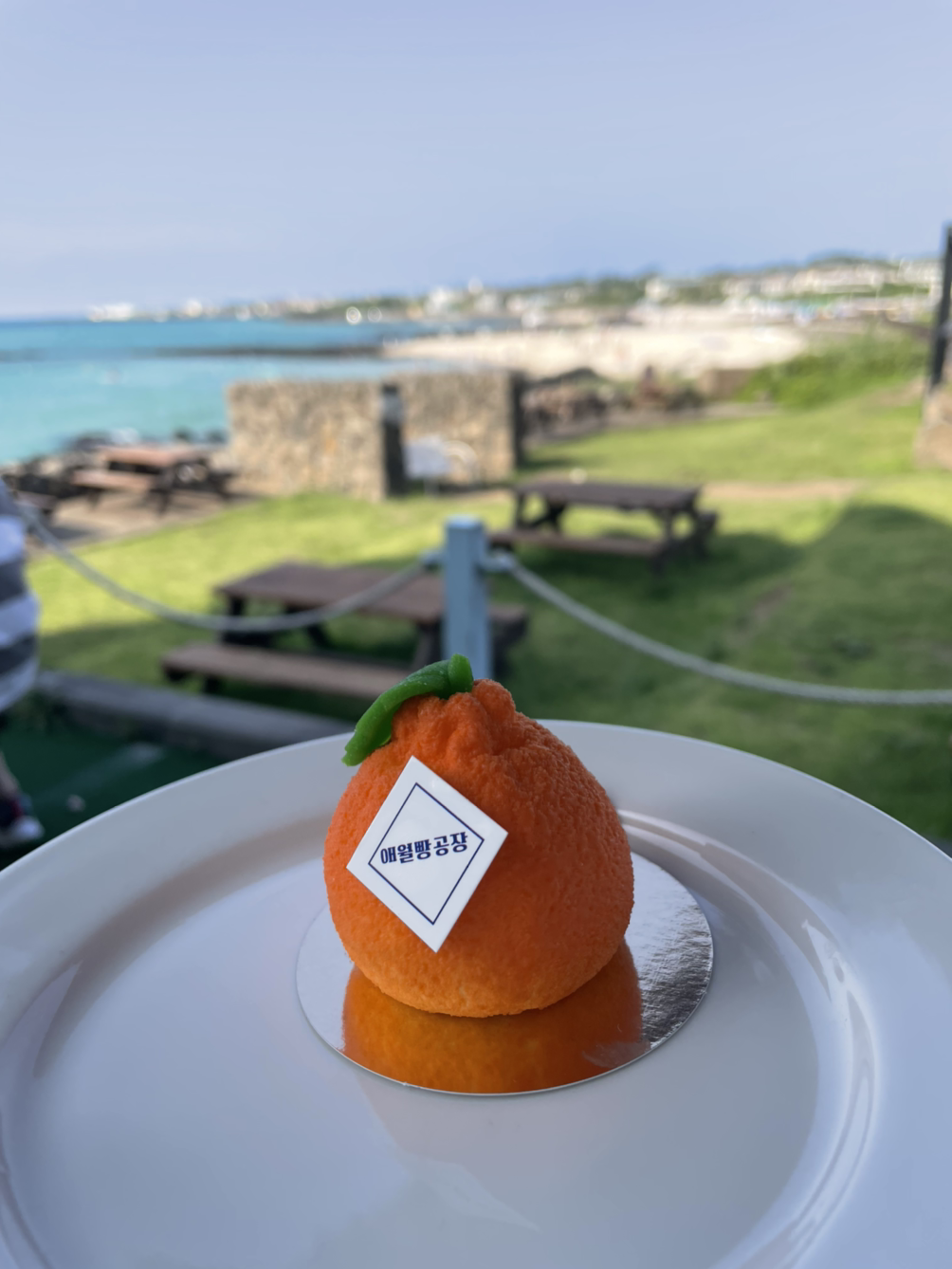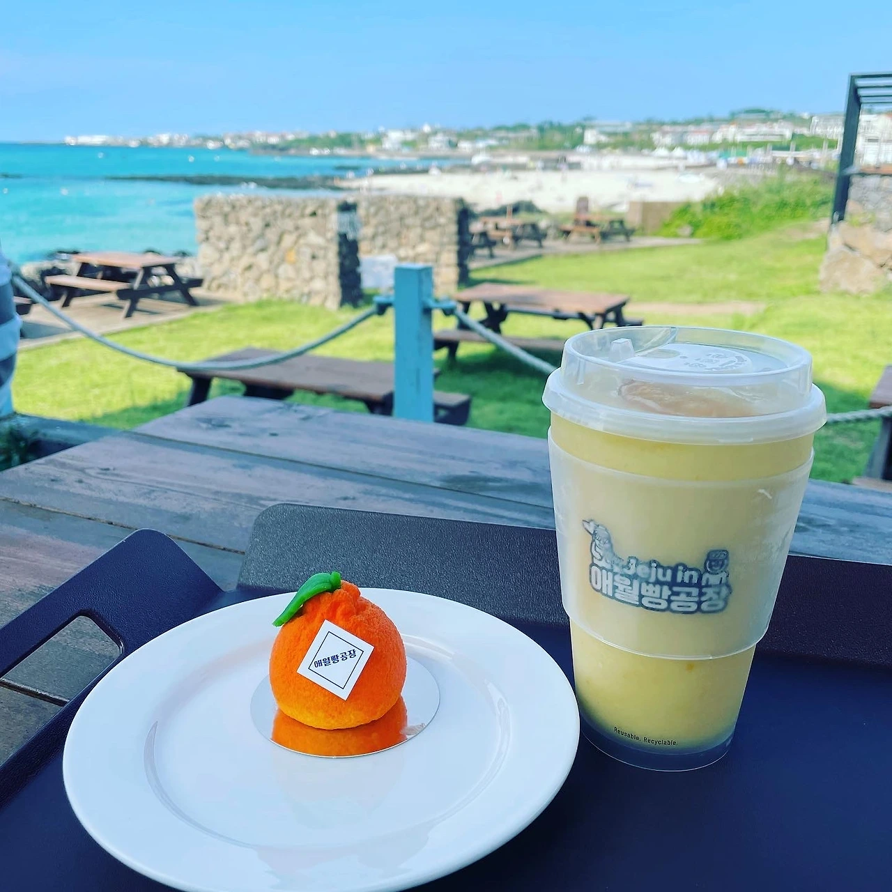 잠깐 바다를 즐기다가 애월 빵공장으로 걸어갔다. 카페 야외 테이블에서도 바다를 바라볼 수 있어 찜하고 찾아온 이곳! 빵과 음료를 주문하고는 야외 테이블에 자리를 잡고 앉았다.