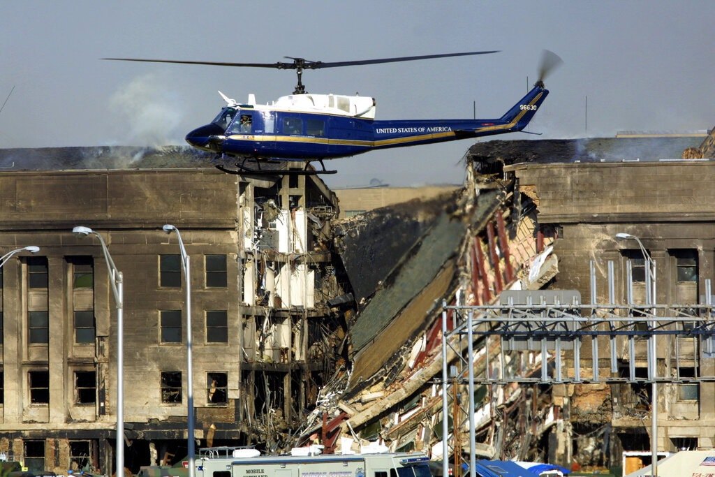 2001년 9월 11일 오전 08:46 미국 뉴욕 맨해튼 세계무역센터 북쪽 타워를 충돌, 오전 09:03 남쪽 타워를 충돌 후 두 건물 모두 붕괴. 같은 날 오전 09:37 버지니아주 미 국방부 본부 펜타곤 서쪽면 충돌. 네 번째로 납치된 비행기는 워싱턴 DC를 목표로 삼았지만 승객들의 저항 끝에 펜실베이니아주 들판에 추락하고 말았다. 짧은 시간 안에 연이어 벌어진 이 일들로 수천 명이 사망하고 수만 명이 부상을 입었다. 조사 결과 테러 조직인 알카에다 집단이 비행기 세 편을 납치하여 일으킨 최악의 테러였다.