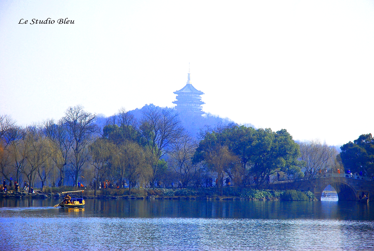 조그만 배 한 척이 유유히 노를 저으며 가고 있다.