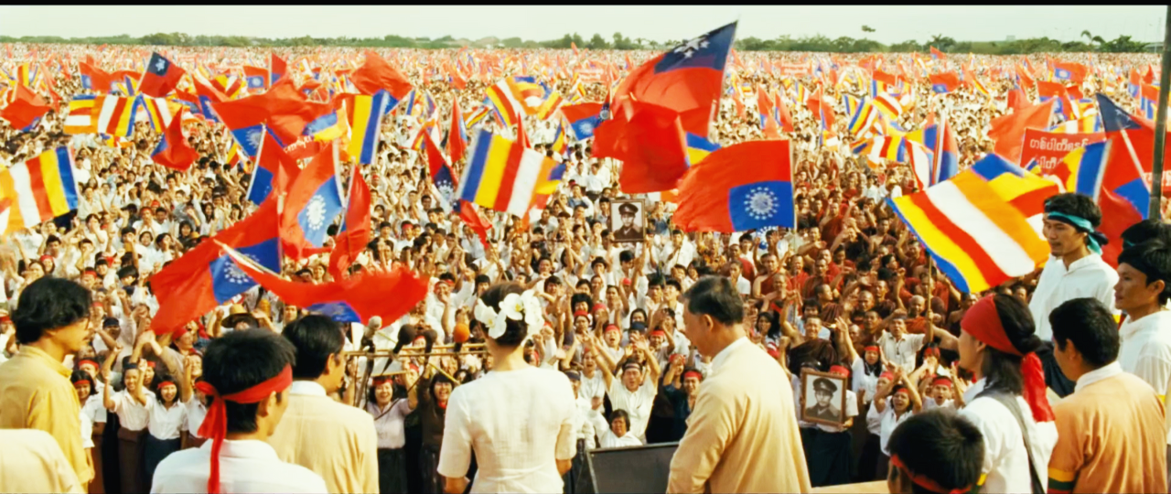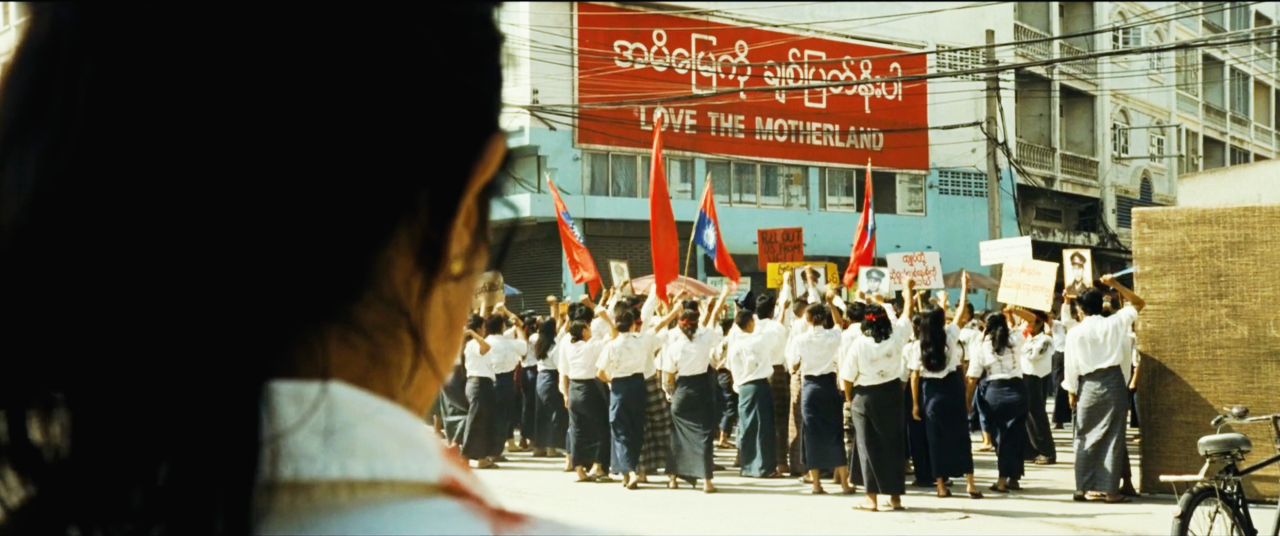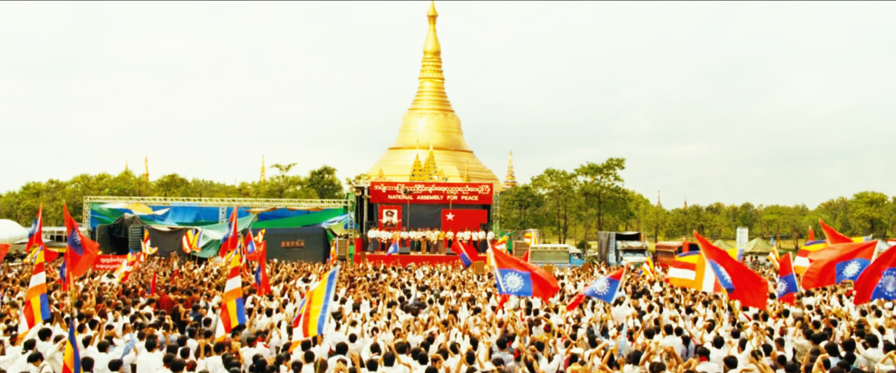 쉐다곤 파고다 앞에 모여 '민주주의' 를 외치던 영화 속의 그 모습을 말이에요.