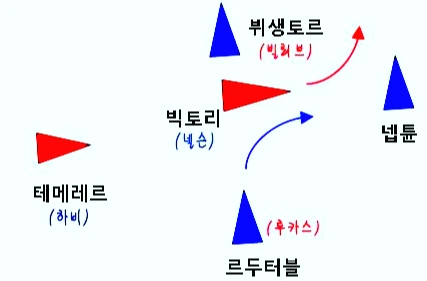 빠져나갈 기회를 엿보던 항구의 프랑스 함대를 보며, 넬슨은 슬그머니 자신의 함대를 뒤로(?) 빼놓습니다. 프랑스 놈들이 바다로 나오는 순간 덮치기 위해서였죠.