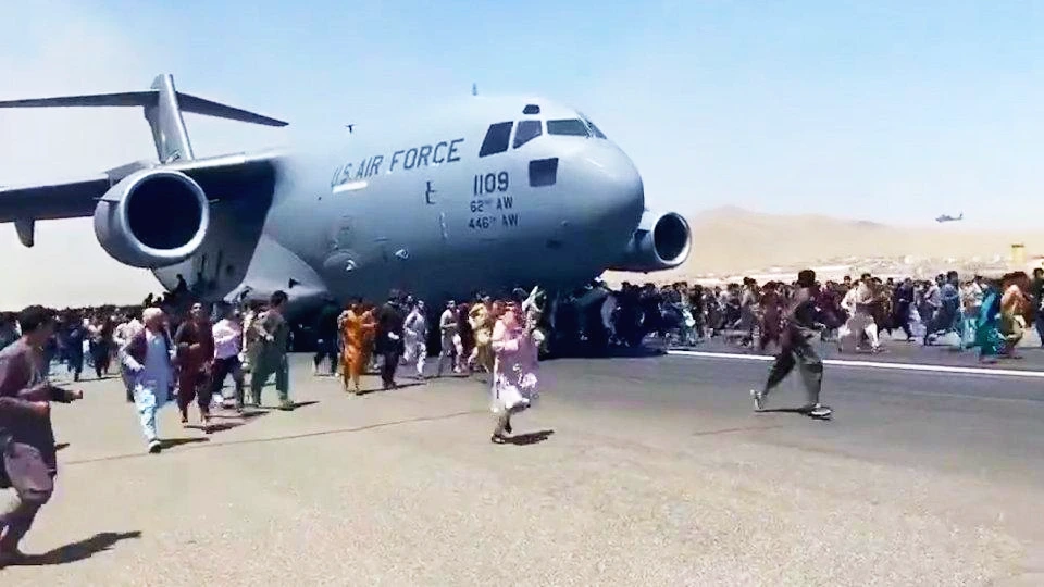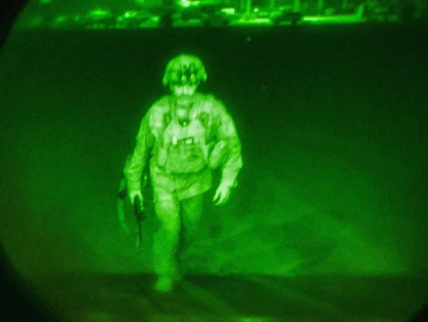 미군 제82 공수사단 소속의 크리스 도나휴 소장이 소총을 쥔 모습으로 수송기에 오르면서, 20년간 이어오던 미군의 아프가니스탄 주둔이 끝나게 됩니다.