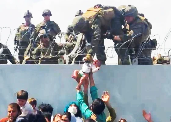 아프가니스탄 군인들은 미해병대의 손에 이끌려