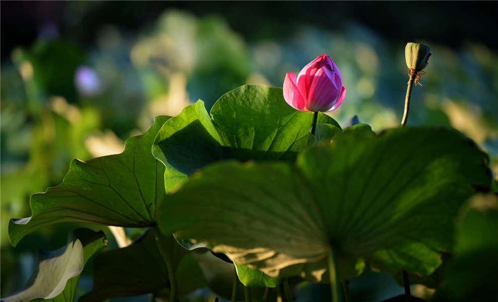 정원 한가운데는 한 송이 연꽃이 보인다.