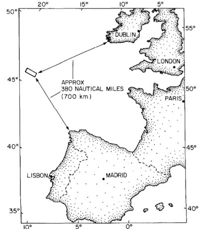 약 90% 이상의 핵폐기물들이 사각형 지점의 바다에 던져졌고, 1948 ~1982년까지 이런 행위로 북대서양에서만 약 14만톤의 핵폐기물이 버려집니다