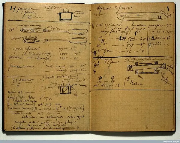 (마리퀴리의 연구 노트 역시 피폭에서 자유롭진 못했답니다, 그녀의 연구노트는 오랜 시간이 지난 지금도 페이지 마다 방사능을 뿜고 있다고 합니다).