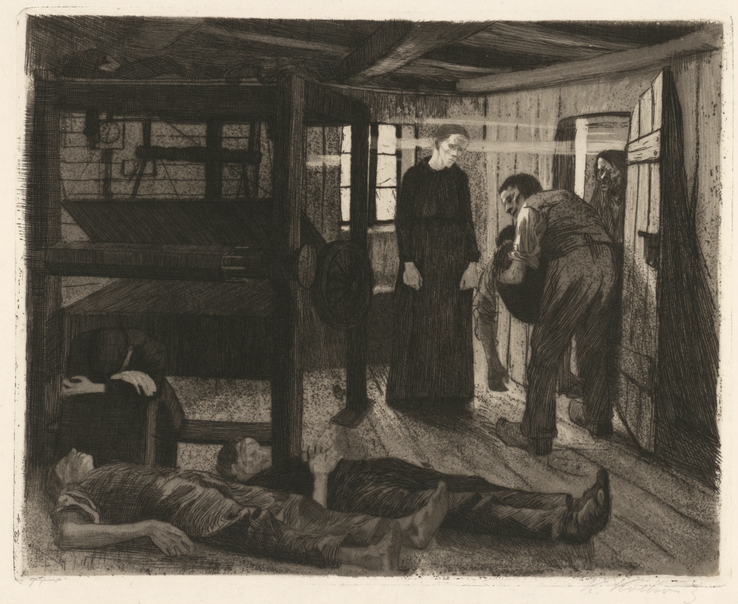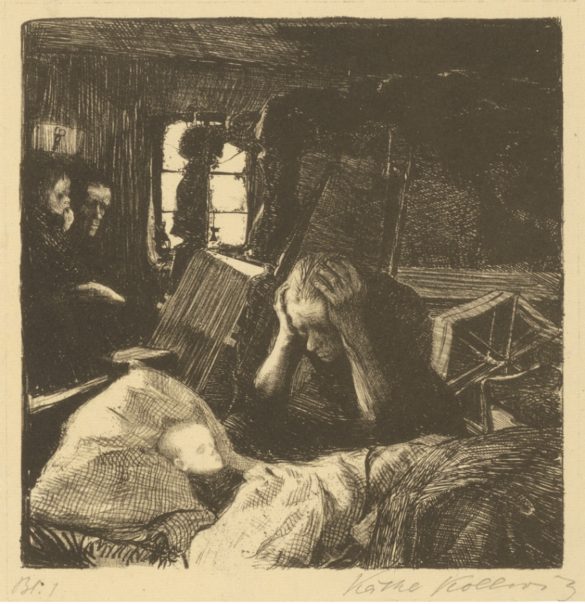 <직조공> 6연작 석판화는 '케테 콜비츠'를 설명할 때, 자주 언급되는 작품입니다. 죽지 않기위해 죽음을 감수해야하는 이들을 왜곡없이 작품에 옮기기 위해, 케테는 1893년에서 1897년까지 무려 4년의 시간을 작품에 할애하죠.