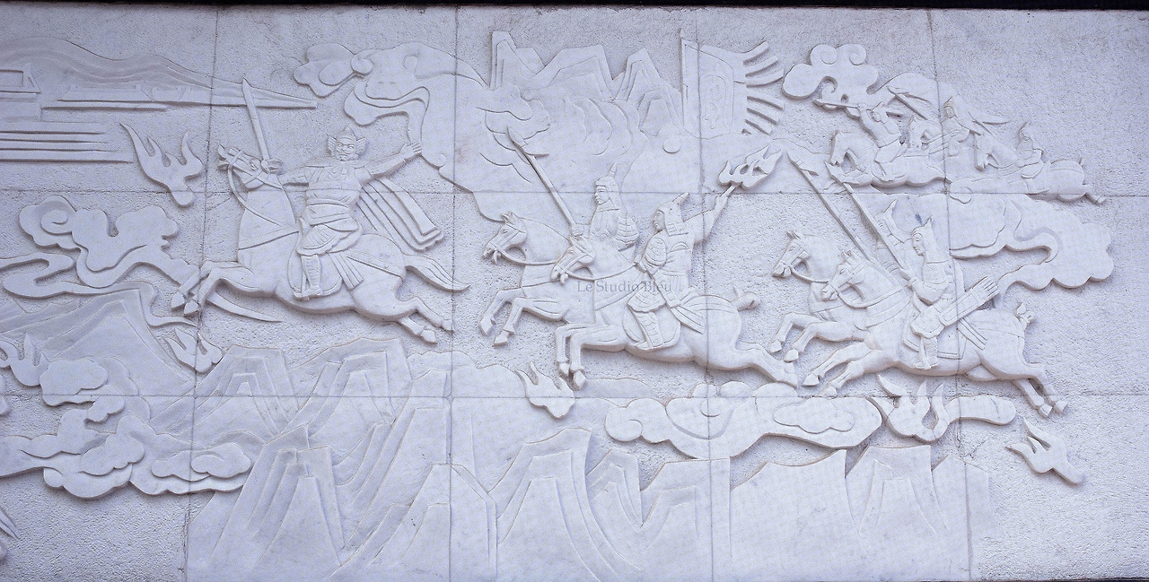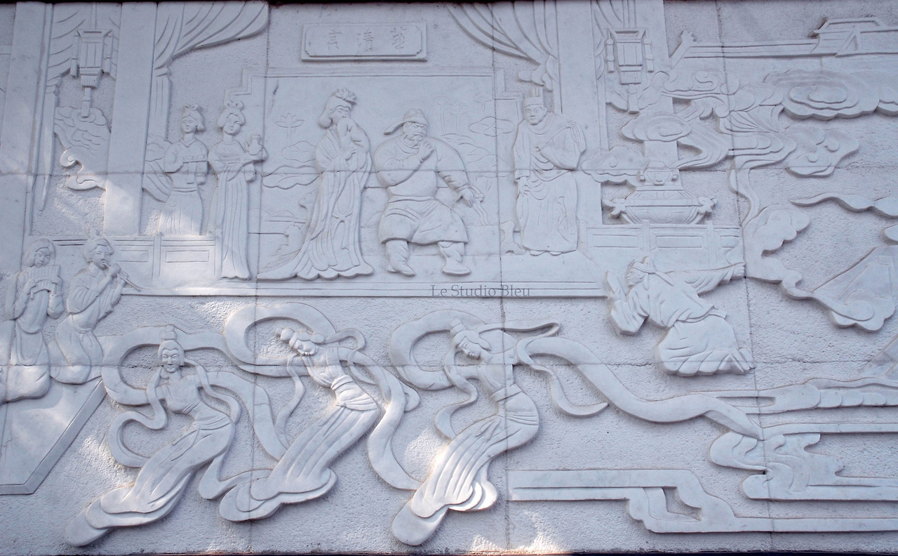 여기 화청지의 벽면에도 어김없이 후대에 교훈이 되라는 의미로 이 이야기가 커다란 조각이 새겨져 있다.