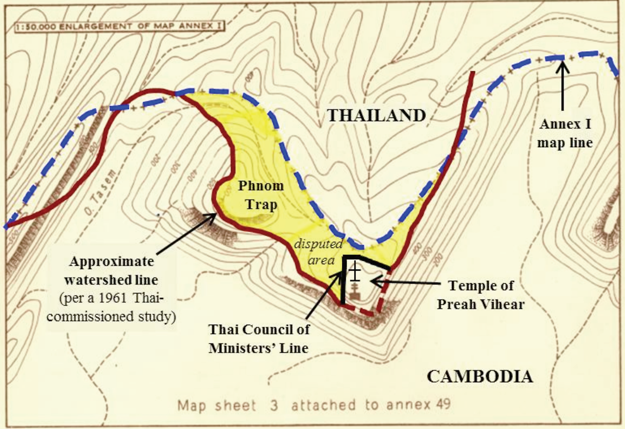 1937년 '태국-프랑스의 우호통상항해조약' 체결 과정에서 태국왕립지리원이 지도를 다시 제작하였는데, 여기서도 사원이 캄보디아 땅으로 되어있는 있었으나 태국정부가 침묵한 점 등을 확인하였습니다.