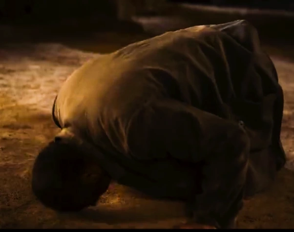 사람들 앞에 끌려 나와 무릎 꿇려지고