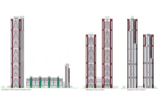 건축물에 작용하는 하중은 중력에 의한 '수직하중(축하중)'과 바람에 의한 '수평하중(횡하중)' 두 가지다. 그리 높지 않은 대다수의 건물에서야 바람에 의한 영향은 수직방향 하중에 비하지 못할 정도로 미미하지만 초고층 건축에서는 얘기가 좀 다르다. 바람에 의해 좌우로 밀리고 뒤틀리는 힘으로부터 버티기 위해서는 별도의 ‘횡력 저항 시스템’을 도입해야만 한다. 파크원 업무시설의 빨간색은 바로 이 횡력 저항 시스템의 얼개를 보여준다.