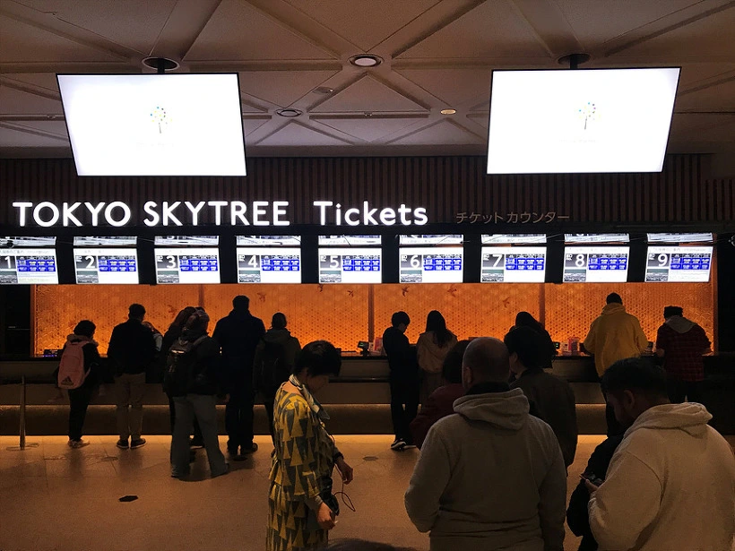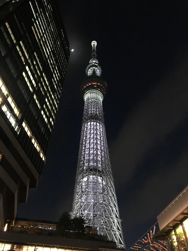 건축물 분야에서야 800m가 훌쩍 넘는 부르즈 할리파가 전 세계 최고 높이 타이틀을 굳게 지키고 있지만, 건물이 아닌 자립식 구조물 중에는 스카이트리가 전 세계에서 가장 높다. 매표소로 들어가기 전 아래에서 올려다본 스카이트리의 외관은 단연 구조미가 돋보인다. 건축가 안도 타다오와 조각가 스미카와 기이치가 감수했다고 하며 강진에도 무너지지 않고 버텼던 일본 목조탑의 구조에서 영감을 얻었다고 한다.