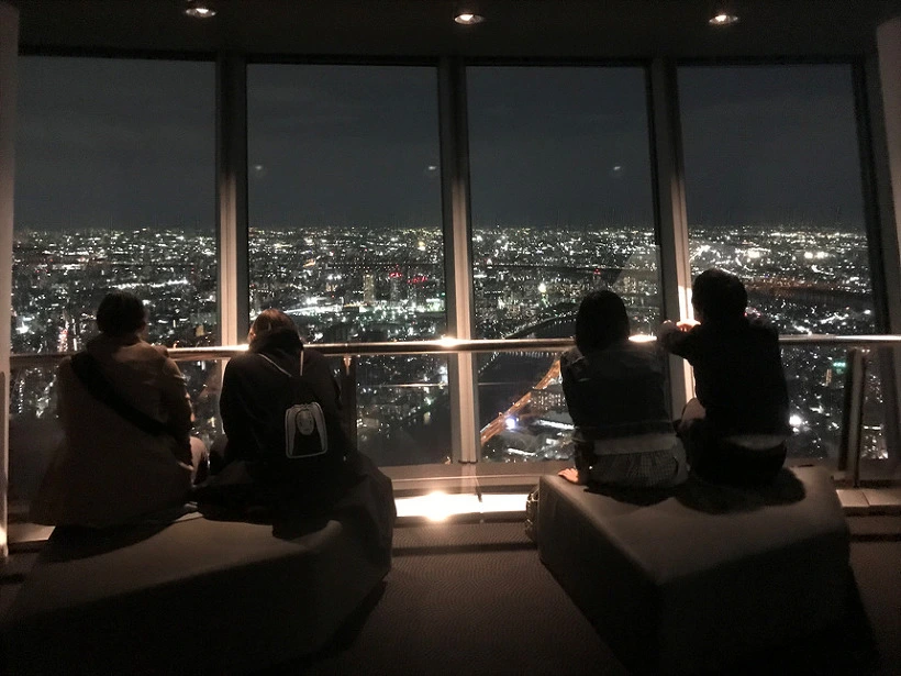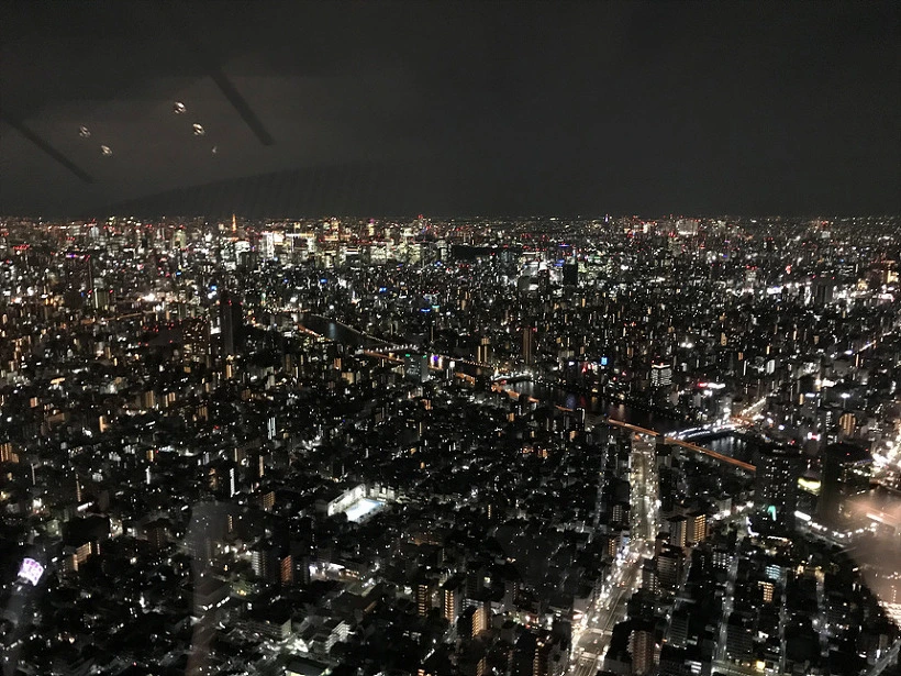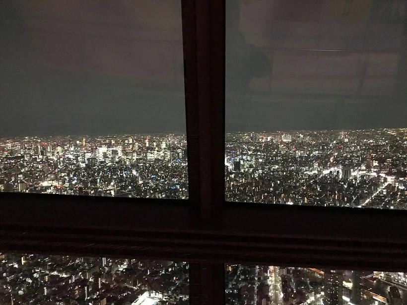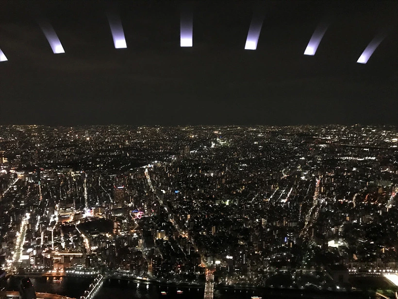 야경도 생각보다는 별로였다. 일단 스카이트리가 위치해있는 스미다구 자체가 상대적으로 도쿄에서 낙후된 지역이다 보니 주변으로 높은 고층건물이나 특징적인 야경 요소가 거의 없었다. 대부분 낮고 비슷비슷한 모양의 건물에다가 도쿄의 지리적 특성상 주변으로 큰 산이 없어서 어디를 둘러봐도 다 거기서 거기처럼 보인다. 남산타워에서 서울을 360도 도는 풍경을 봤을 때 보는 방향마다 새삼 달라지는 풍경에 즐거워했던 기억과 상당히 대조적이다.