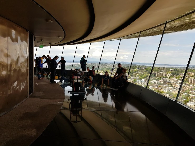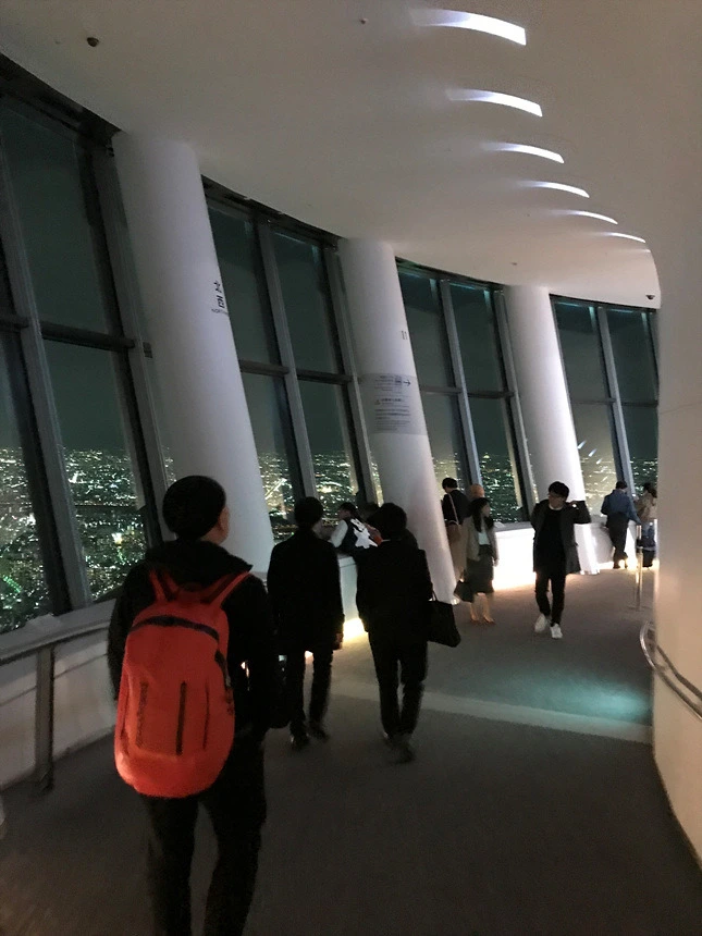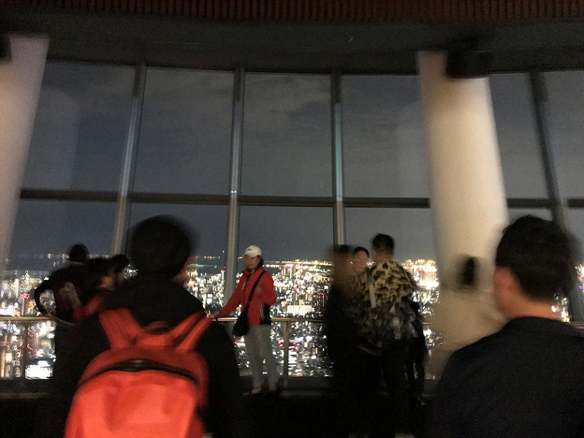 마침내 문이 열리고 350m 전망대에 도착했다. 야경도 야경이지만 사실 제일 먼저 눈에 들어온 건 창문을 따라 촘촘하게 늘어선 지름 1m는 족히 되어 보이는 하얀 기둥들이었다. 어떻게든 유리창 면적을 넓게 해서 시야를 확보해줘도 모자랄 멋진 전망대에서 눈 앞을 답답하게 가려버리는 불청객이라니. 야경이 눈에 잘 들어오지 않을 정도로 불편했다.