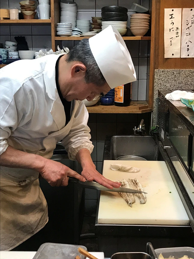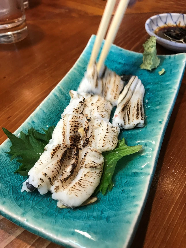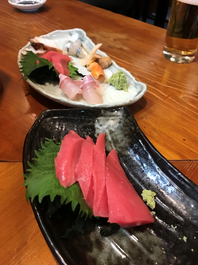 도겐자카 거리 이면에 위치한 아주 작은 이자카야를 찾았다. 손님이래 봐야 여섯 명이 채 못 들어갈 법한 좁은 곳이었는데 현 사장님은 2대째 가게를 이어받아 운영하고 계신다고 했다. 밥을 먹고 오는 길이라 안주삼아 모둠 회만 조금 시켜본다는 게 영어를 꽤 하시던 주인아저씨의 말주변과 분위기에 취해 이 집에서 가장 자신 있는 메뉴들을 연속으로 선보이는 자리가 되어버렸다. 우리가 맛과 재료를 알아보자 주인아저씨는 더욱 신이 나셨는지 아예 묻지도 않아도 혼자 골똘히 생각하시다가 메뉴를 척하고 주시기도 했다. 어느덧 문 닫을 시간이 되어 명함까지 서로 주고받으며 즐거운 술자리가 끝이 났다. 스카이트리에서 잔뜩 실망한 마음은 어느새 물에 술 탄 듯, 술에 물 탄 듯 다 잊어버렸다.