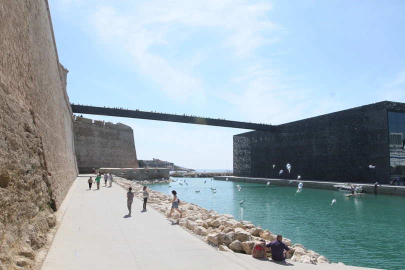 왜 다리 하나에 이토록 공을 들였을까. 그 해답은 반대편에 도착해서야 비로소 알 수 있었다. 생장 요새의 오래된 성벽으로 연결된 다리의 끝부분에는 그 어떤 구조물이나 군더더기 하나 없었다. 마치 가벼운 깃털이 땅 위에 놓인듯한 모습으로, 아무것도 건드리지도 해치지도 않으며 오래된 건축과 완벽하게 조우하고 있었다. 어떻게 해야 수 백 년의 시간차를 가지는 두 건축이 하나로 연결되면서도 서로를 존중할 수 있는가. 거기에 대한 멋진 해답이 마르세유에 있었다.