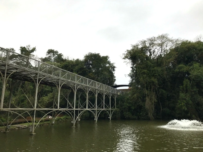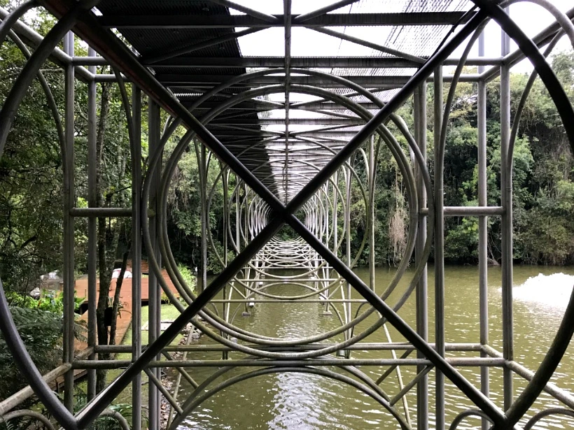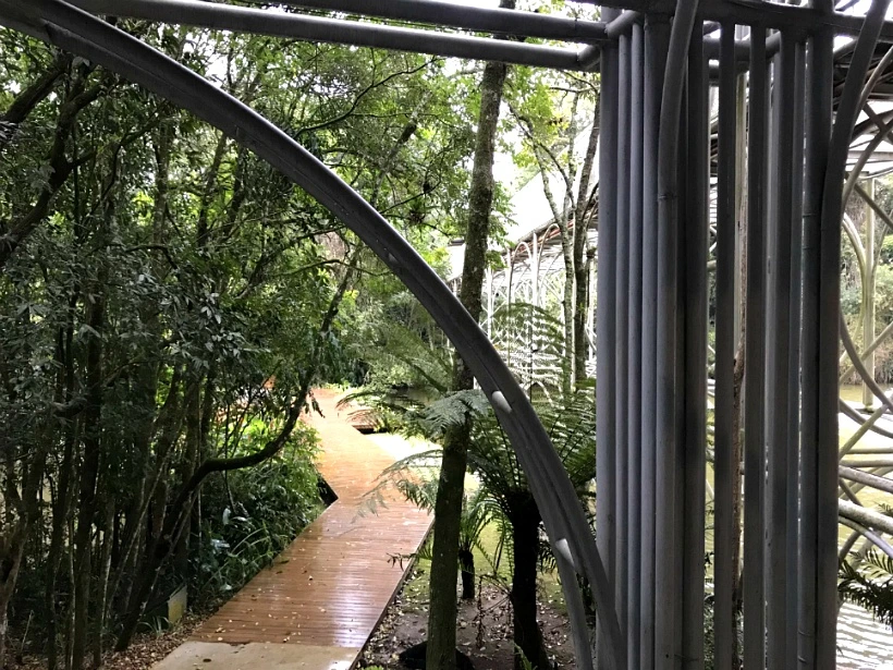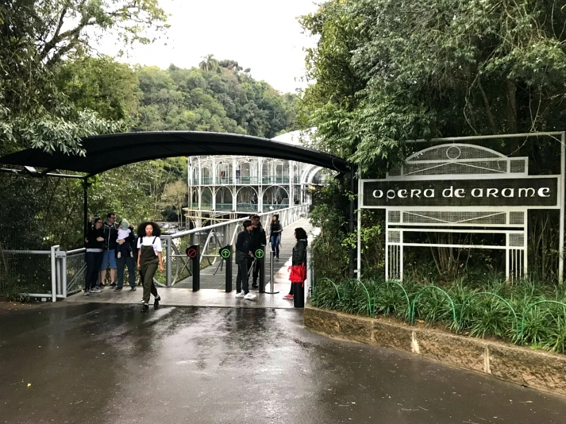 쿠리치바를 떠나기 전 마지막으로 들른 곳은 아라메 극장이다. 포르투갈어 아라메(Arame)는 영어로 'wire', 우리말로는 '줄'이다. 보통 공사현장에서 가설재로 많이 사용하는 지름 48.6mm짜리 강관을 다양한 방법으로 조합하여 멀리서 보면 '줄'을 엮어 만든 건물처럼 보이기에 붙은 이름이다. 사실은 상파울루로 돌아가는 비행기 시간이 얼마 남지 않아 방문을 망설였었다. 공항은 시내 남쪽이지만 아라메 극장은 북쪽 외곽에 위치하여 정 반대였기 때문이다. 그래도 안 가보면 못내 후회할 것만 같아 우버를 잡아타고 드라이버를 재촉했다.