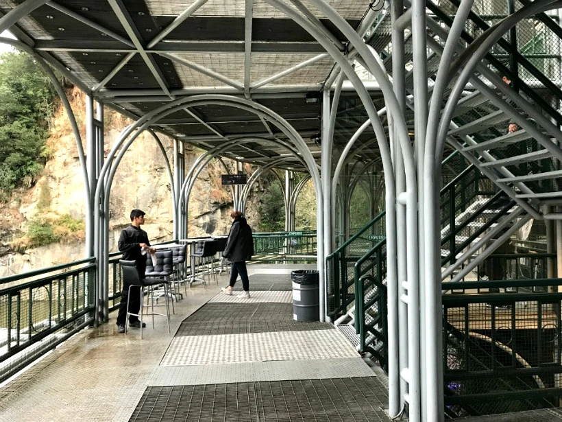 1 지하철 개찰구 형태의 문에서 요금 지불을 하고 정류장 내부로 들어간다.