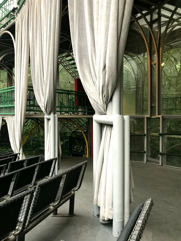 커튼과 기둥의 일체화, 재료와 공간이 하나가 되는 초현실적인(?) 장면!