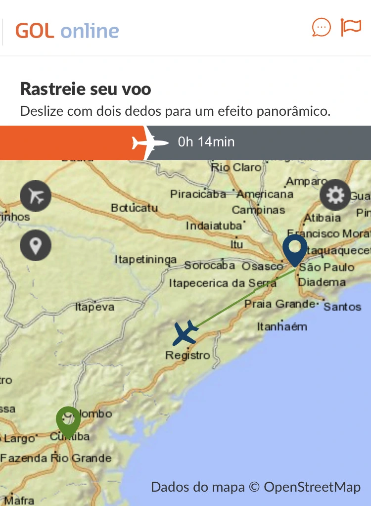 상파울루에서 쿠리치바까지의 비행경로, 기내 좌석에 AVOD 모니터가 없는 대신 와이파이를 이용한 개별 스마트폰 연동 서비스를 제공한다.
