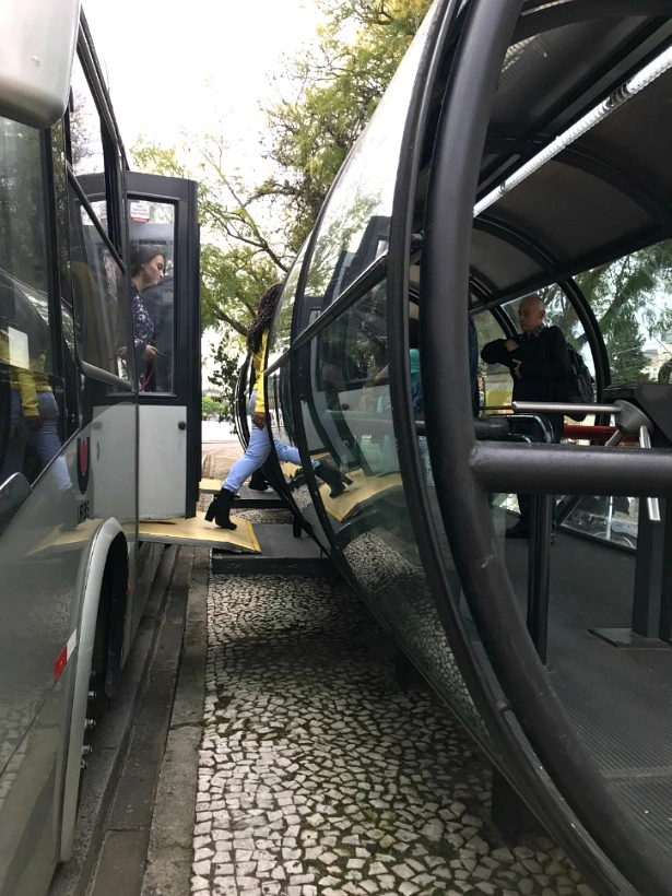 짜잔! 거의 완벽한 도킹을 보여주는 쿠리치바의 버스와 정류장. 살펴본 바로는 버스 기종에 따라 사진보다 더 완벽하게 수평을 이루는 경우도 있었다.