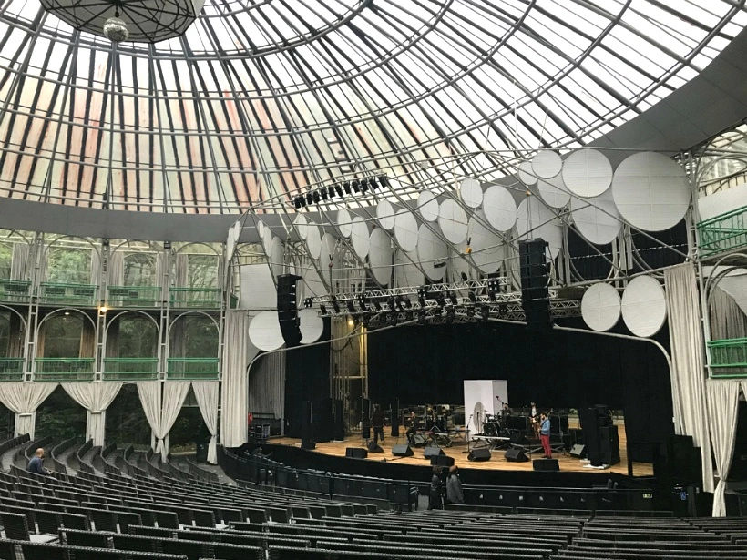 공사는 단 2개월 만에 신속하게 완료되었다. 그야말로 '말도 안 되게 빠른' 공사 속도다. 공연장이라는 기능에 충실하도록 평면 형태를 원형으로 단순화하고 값싸고 다루기 쉬운 재료인 강관(steel pipe)을 채택하여 공기(工期), 비용, 구조, 그리고 미(美) 모든 면에서 영리하게 활용했다. 자세히 보면 건축은 물론이고 객석 의자 같은 작은 부분까지도 강관이라는 재료적 이점을 극대화했다. 기둥 사이에 틈을 두어 커튼을 끼워두게 만든 건 누구의 재치였을까. 보는 사람으로 하여금 감탄이 절로 나오게 만드는 기발함마저 구석구석 녹아 있었다.