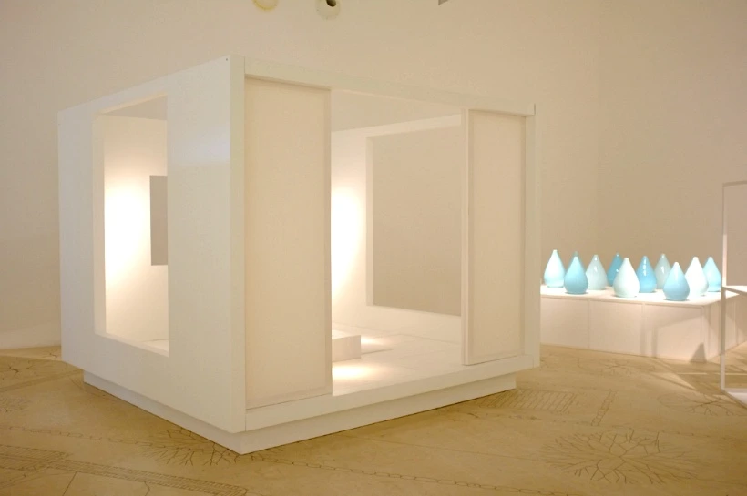 승 선생님 뜻에 따라 저마다 다른 크기, 형태, 용도로 설계된 원목 가구들은 도자기를 관람객에게 보여줄 수 있는 다양한 군집의 가짓수를 전제로 한다. 이를테면 어떤 것은 단 한 개의 도자기만을 올려놓을 수 있고, 또 어떤 것은 아홉 개를 한데 모아 보여주는 식이다. 뿐만 아니라 어떤 것은 무릎 정도 높이도 채 안되는가 하면 , 또 어떤 것은 사람 키만큼 높은 벽장이기도 했다. 결국 단일 형태의 대상을 '군집의 행태'를 달리함으로써 관람자가 다양한 시선으로 바라볼 수 있도록 유도하는 것이다.