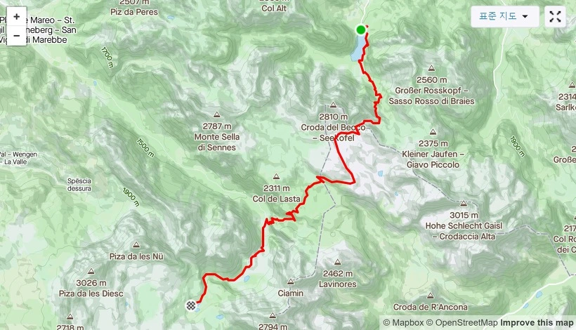 밀라노에서 미리 내려받아온 ‘돌로미티 공식 등산지도 앱’에 따르면 눈앞의 저 험준한 산봉우리가 바로 오늘 내가 걸어야 하는 '알타비아 1'이 위치한 곳이었다. 게다가 이 똑똑한 앱은 친절한 방위 표시와 루트 미리보기 기능을 통해 내가 오늘 묵기로 예약된 산장이 두 개의 봉우리를 너머서야 위치해있음을 친절하게 안내해주고 있었다. 오 신이시여...