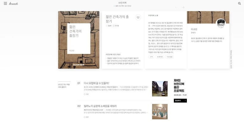 제8회 브런치북 출판 프로젝트에 응모했습니다. 출품작은 브런치북 ‘젊은 건축가의 출장기’입니다. 아래 링크를 클릭하시면 브런치북으로 이동합니다. 구독자 여러분의 많은 관심과 좋아요 부탁드려요!