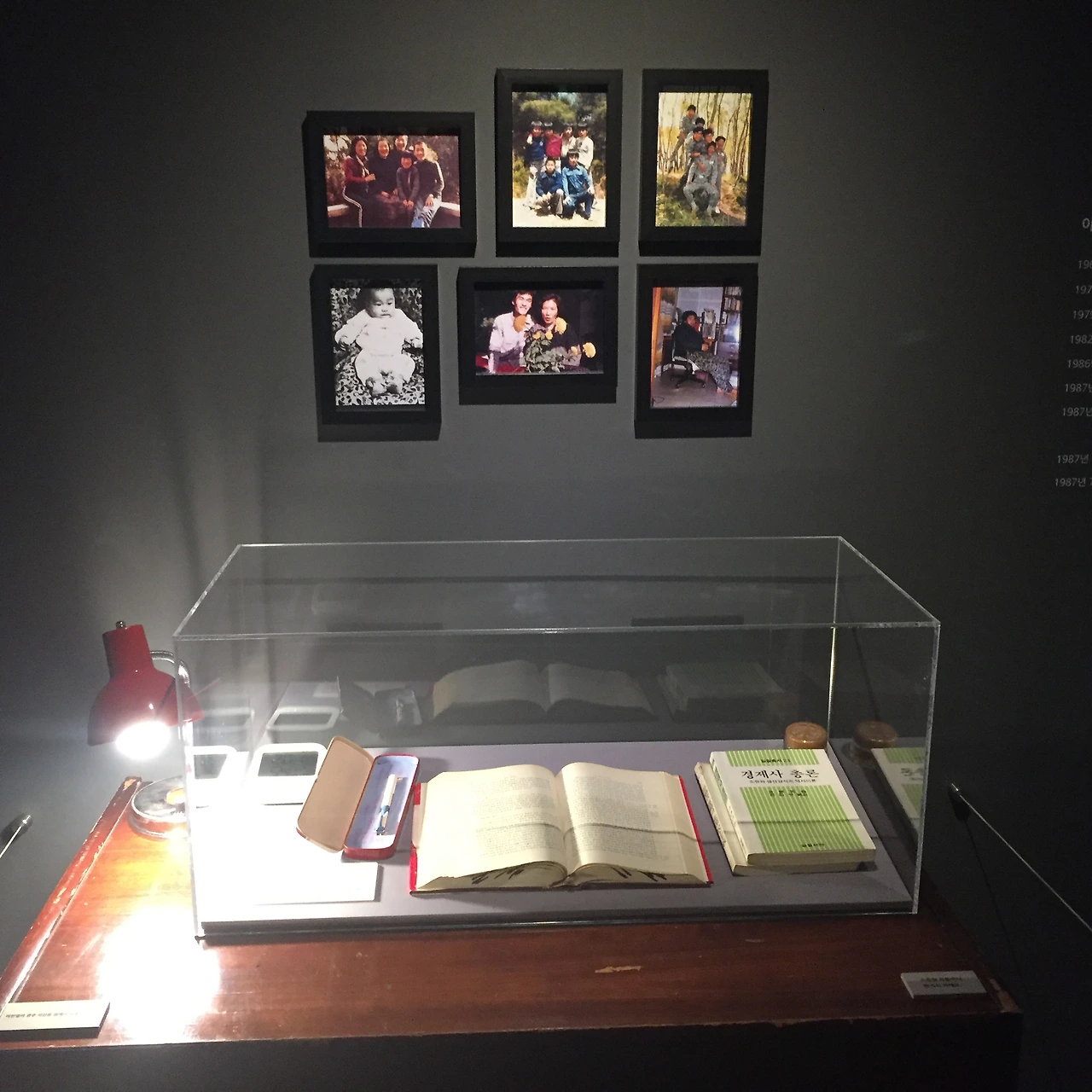 3-2층에는 유품과 기념 영상이 있었다. 관리하시는 분들의 약간의 조작 후 유리로 된 스크린에서는 이한열 열사에 대한 소개와 87년 시위의 의미를 설명하는 영상이 반복적으로 흘러나왔다. 스크린 반대편에는 광주에 있던 것을 가져온 열사 생전의 책상 위에는 사회과학도서와 생전에 쓰던 펜과 필통, 사진 등이 걸려 있었다. 그 작은 방에서 가장 빛나는 것은 최루탄에 맞아 스러진 그 순간에 입었던 옷과 신발, 허리띠 등을 보존해 전시해 놓은 유리벽이었다.