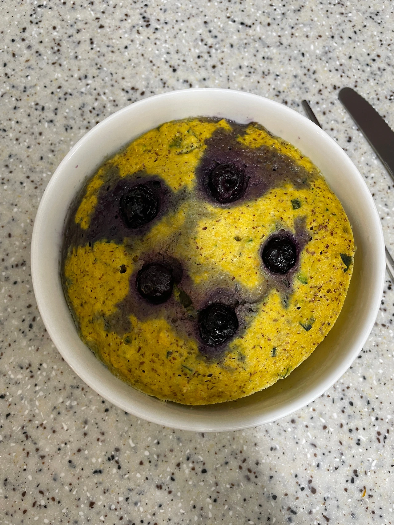 단호박에 아몬드가루와 계란, 소금만 넣고 블루베리를 얹어 데운 단호박빵. 건강하고 맛있는 맛이다.