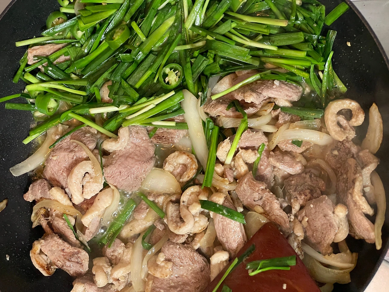 오리고기를 사다가 유기농 부추와 청양고추, 양파를 넣고 볶았다. 맛이 괜찮았다.