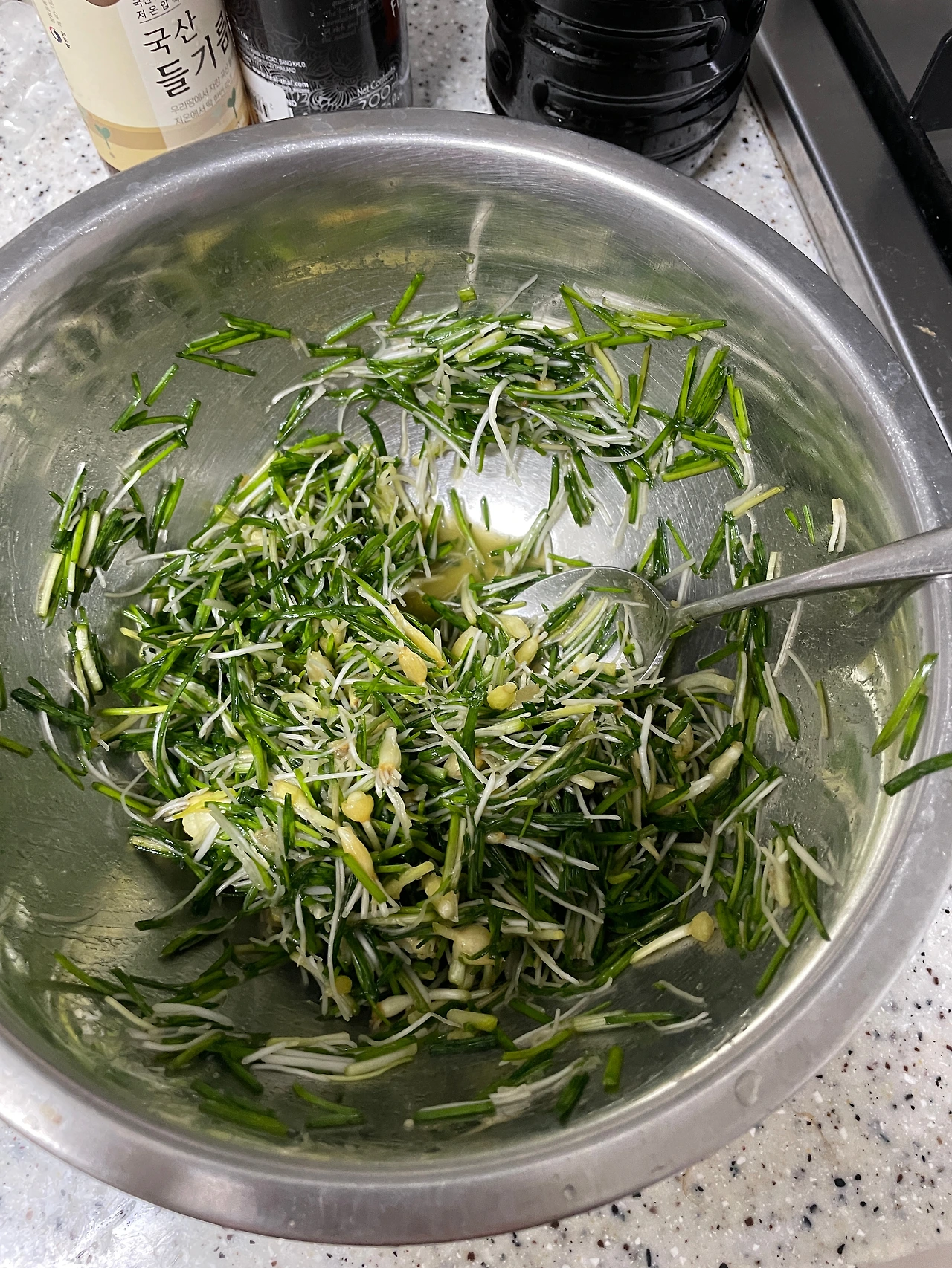 제철 음식을 먹는 게 좋대서 달래를 사다가 들기름과 간장을 섞어봤다. 맛은 없었지만 건강한 맛이었다.