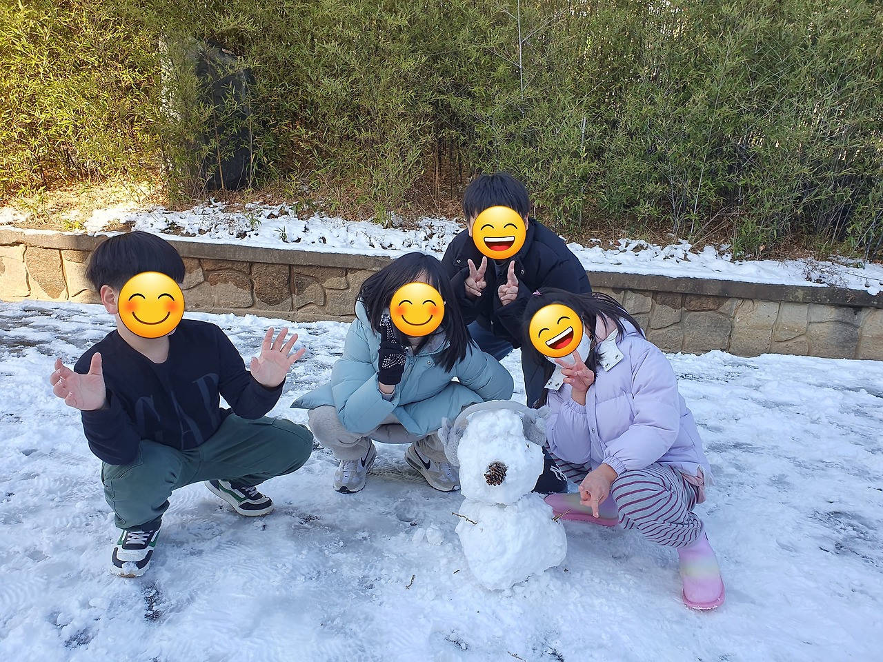 얼마 되지 않는 눈을 뭉친다고 난리다.
