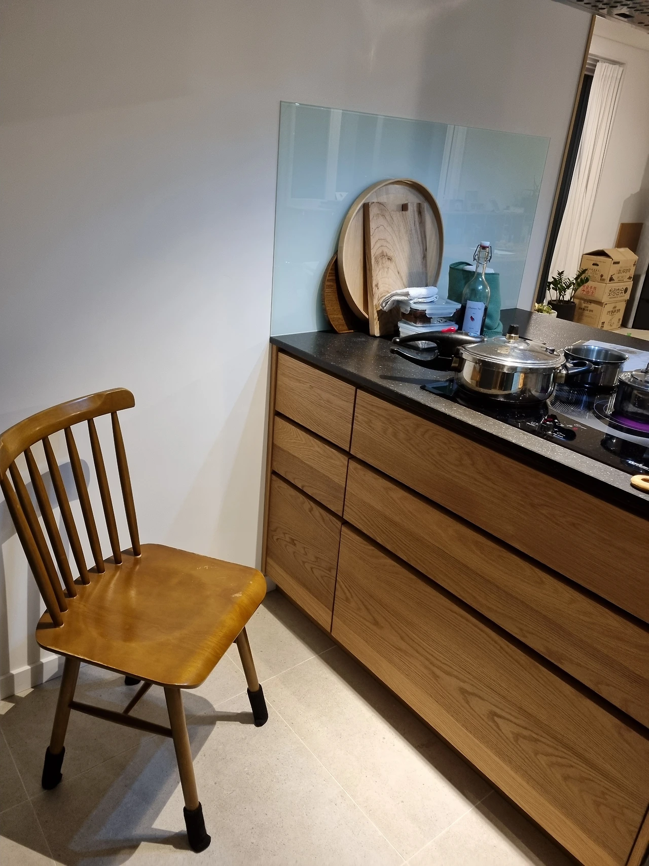 내가 집을 비운 사이 남편이 의자를 다시 제자리에 가져다 두었다. 의자는 다시 조리대 곁에, 압력솥은 꺼내기 쉬운 곳에 두고 현미밥과 고급진 채소 요리를 자주 해주기로 마음먹는다.