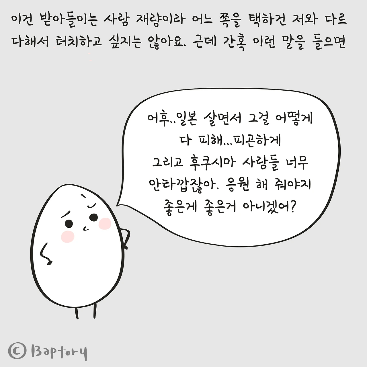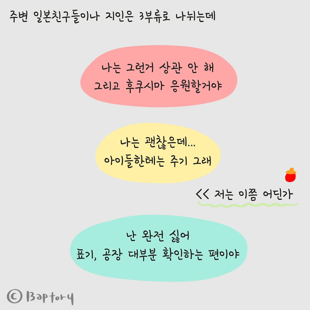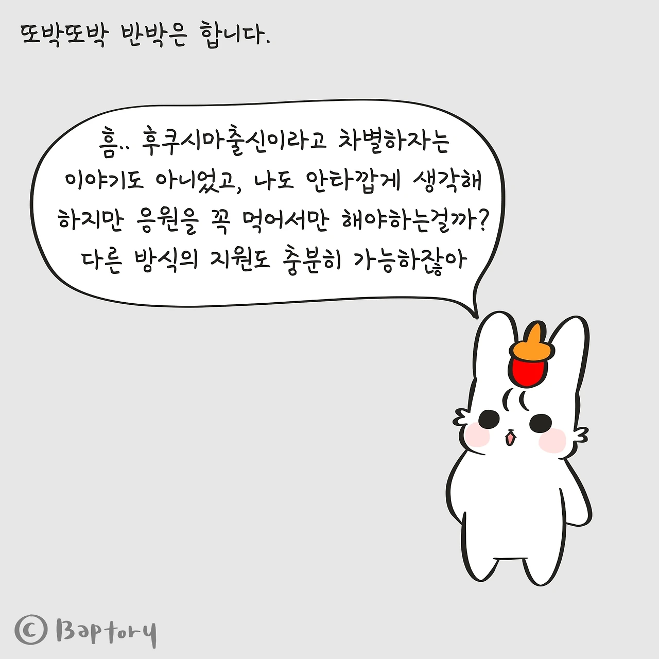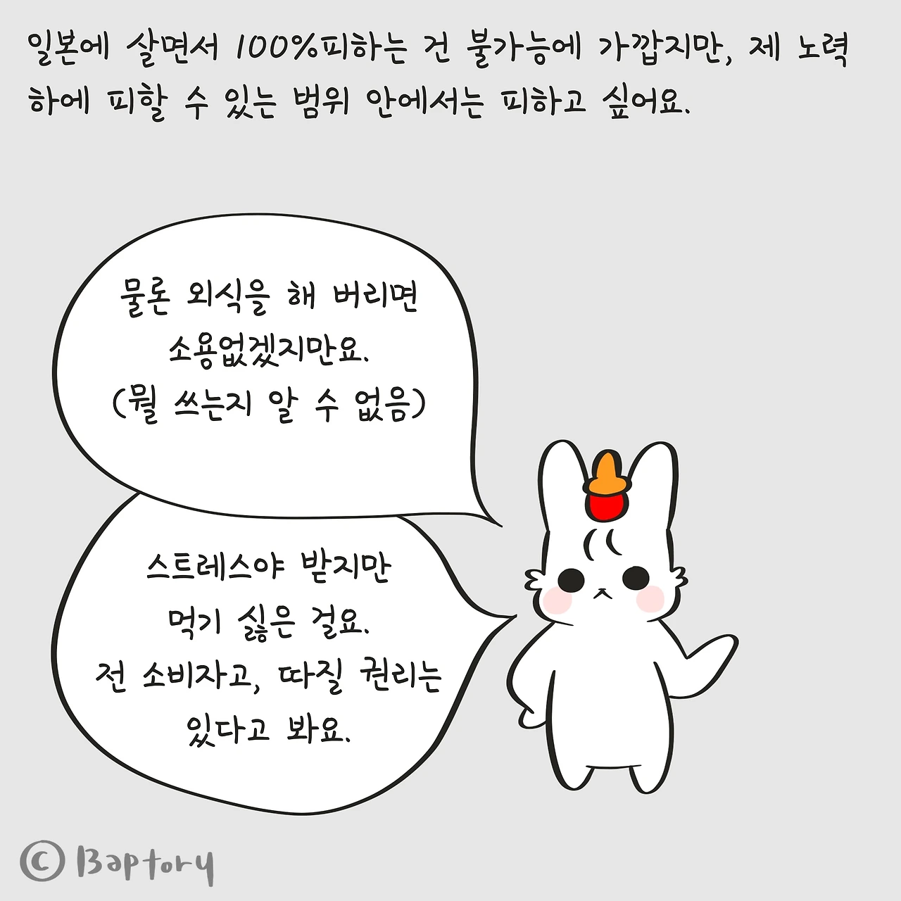 후쿠시마산은 먹기 싫다고.. 식재료 따지는 건 나로 족하니까